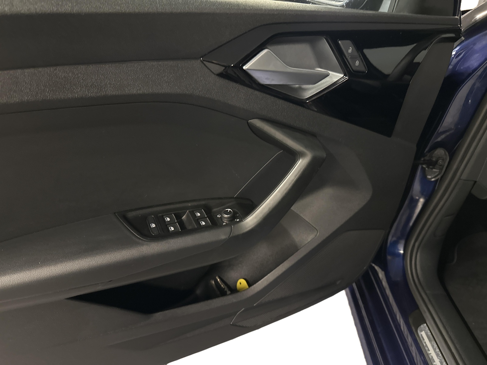 - Applications décoratives étendues sur le tableau de bord façon verre en noir, de l'écran couleur MMI touch jusqu'aux triangles de portières AV façon verre en noir