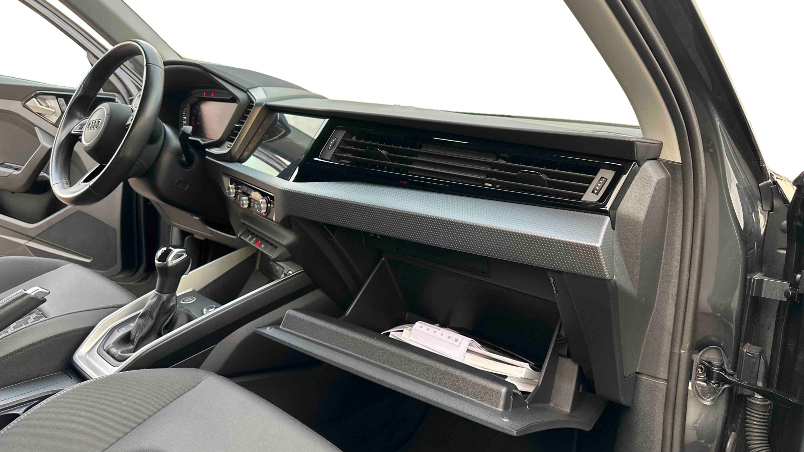 - Applications décoratives étendues sur le tableau de bord façon verre en noir, de l'écran couleur MMI touch jusqu'aux triangles de portières AV façon verre en noir