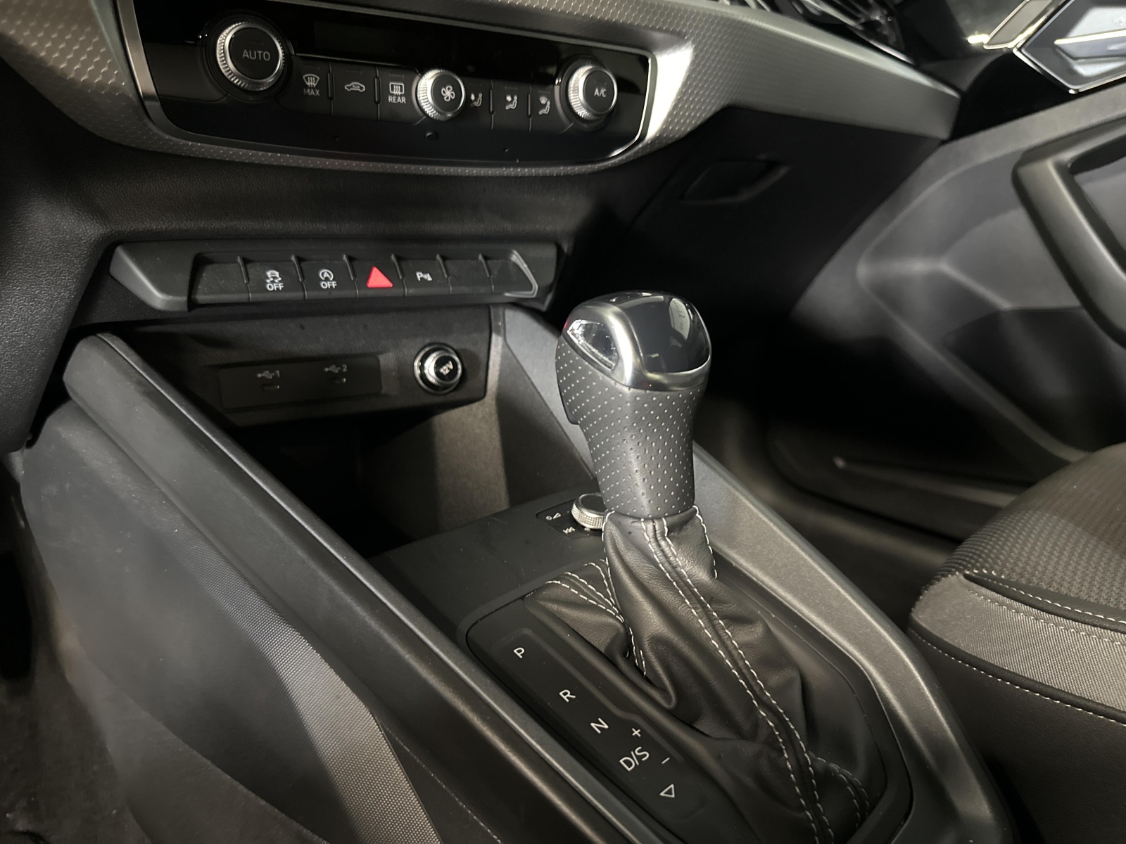 - Pommeau de levier/sélecteur de vitesses en cuir perforé