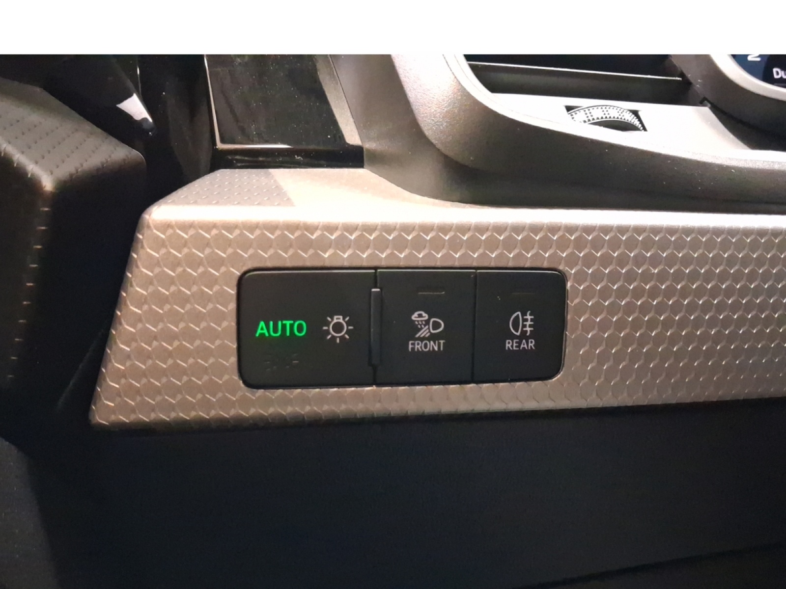 - Applications décoratives étendues en laque Quartz Gris structuré dans l'insert du diffuseur d'air et de la console centrale ainsi que dans la poignée de la commande intérieure de verrouillage des portières
