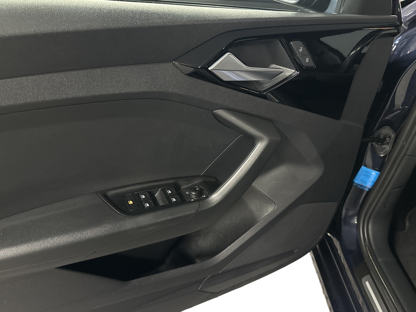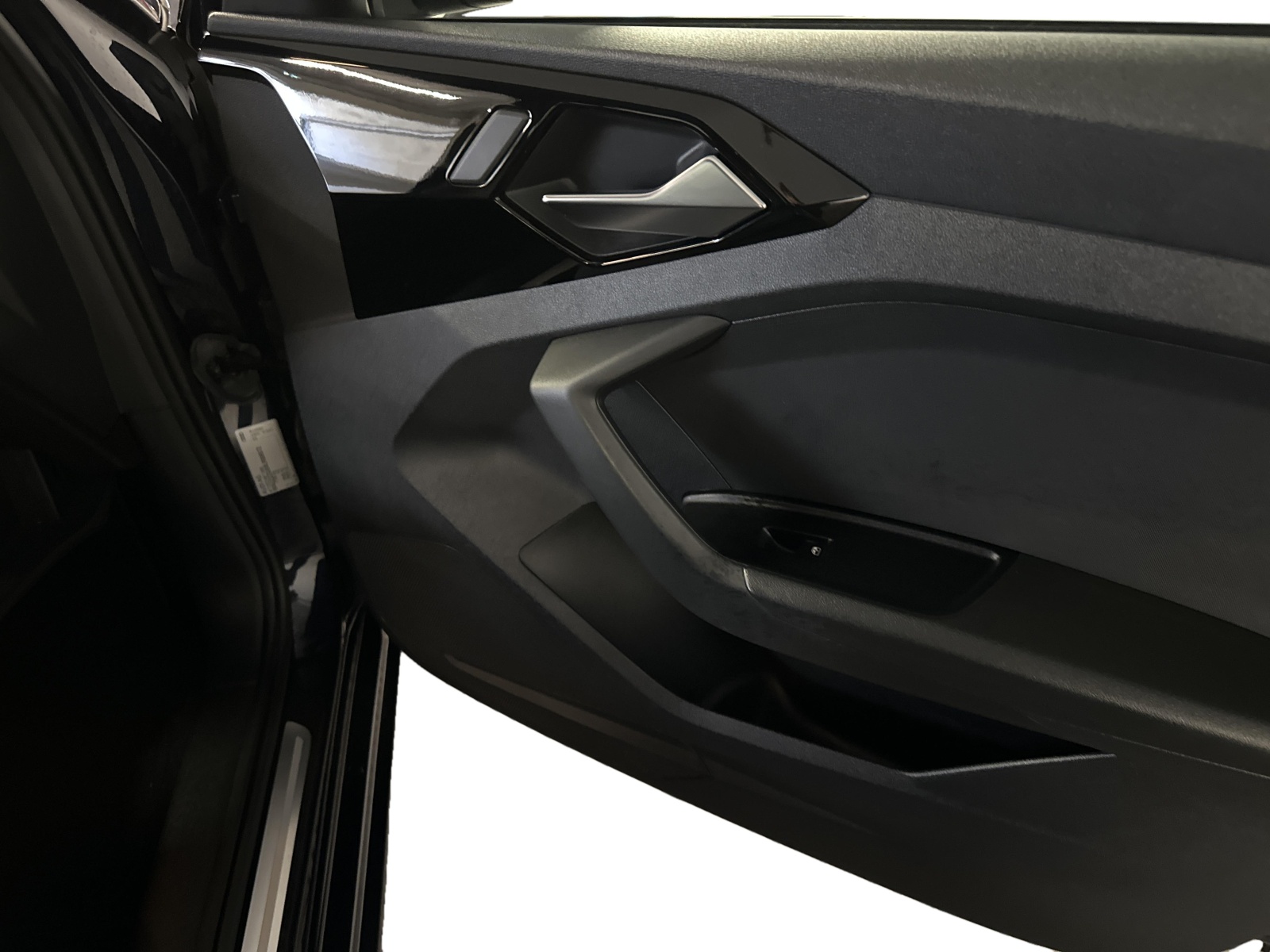 - Applications décoratives étendues sur le tableau de bord façon verre en noir, de l'écran couleur MMI touch jusqu'aux triangles de portières AV façon verre en noir
