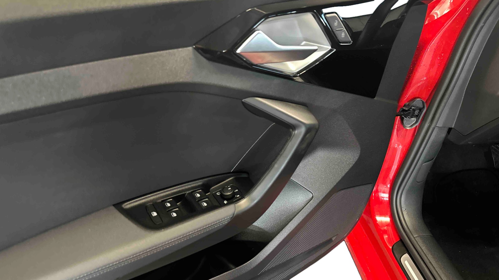 - Applications décoratives étendues sur le tableau de bord façon verre en noir, de l'écran couleur MMI touch jusqu'aux triangles de portières AV façon verre en noir