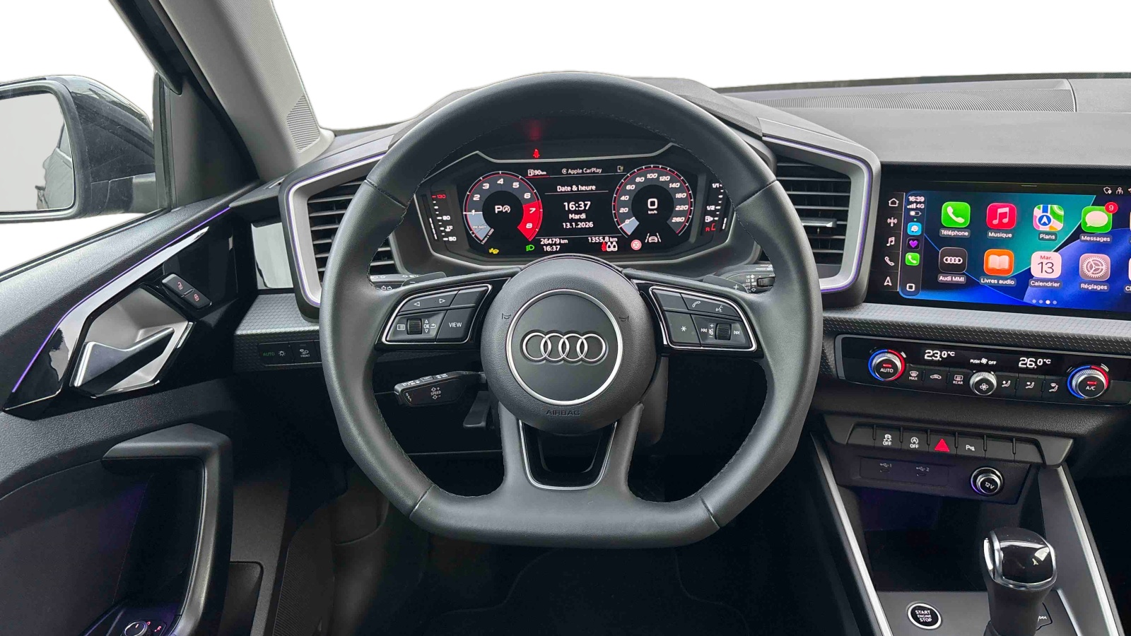 - Volant Sport contour en cuir style 3 branches à méplat avec multifonctions plus et palettes de changement de vitesses