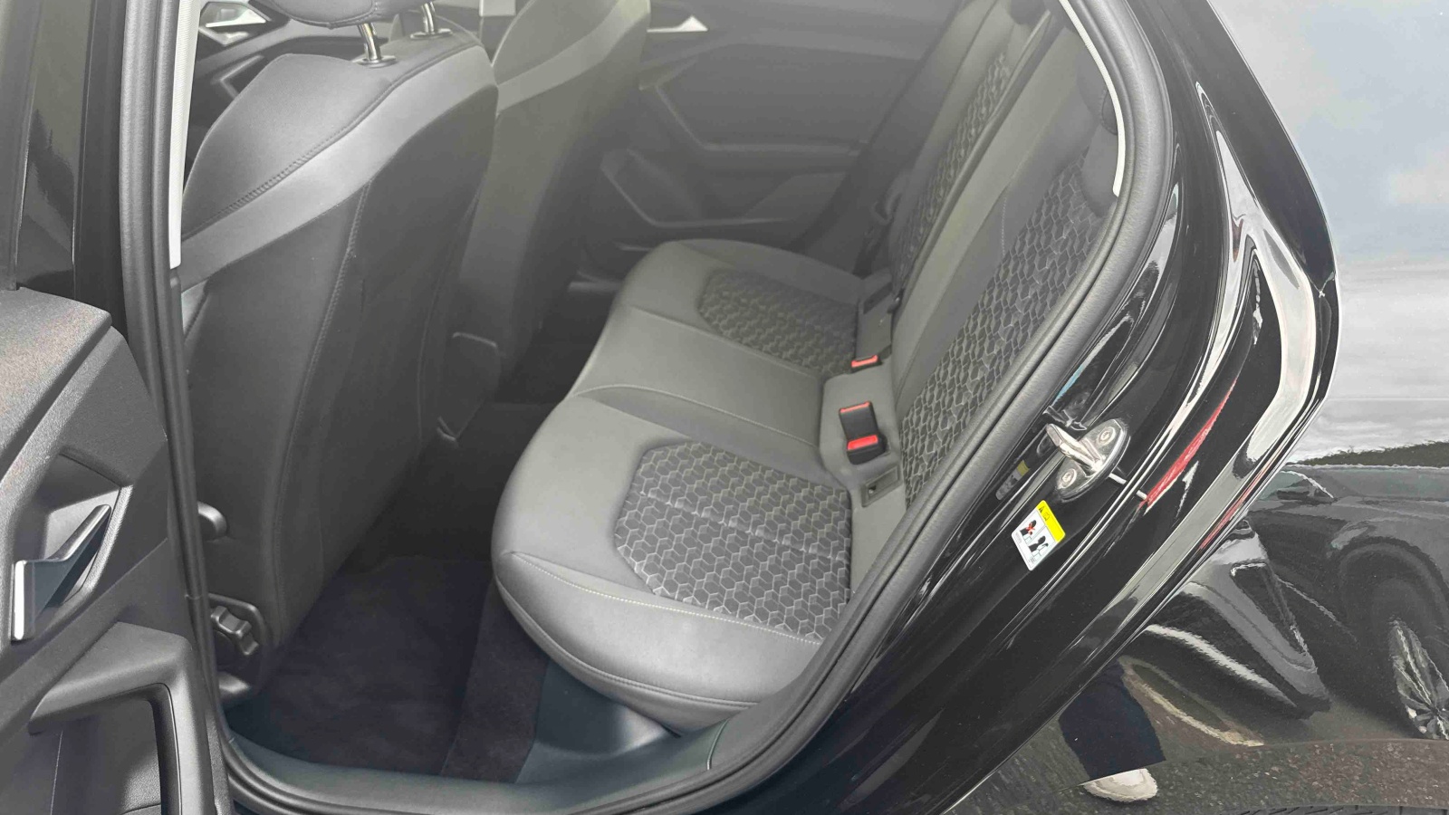 - Applications décoratives étendues sur le tableau de bord façon verre en noir, de l'écran couleur MMI touch jusqu'aux triangles de portières AV façon verre en noir
