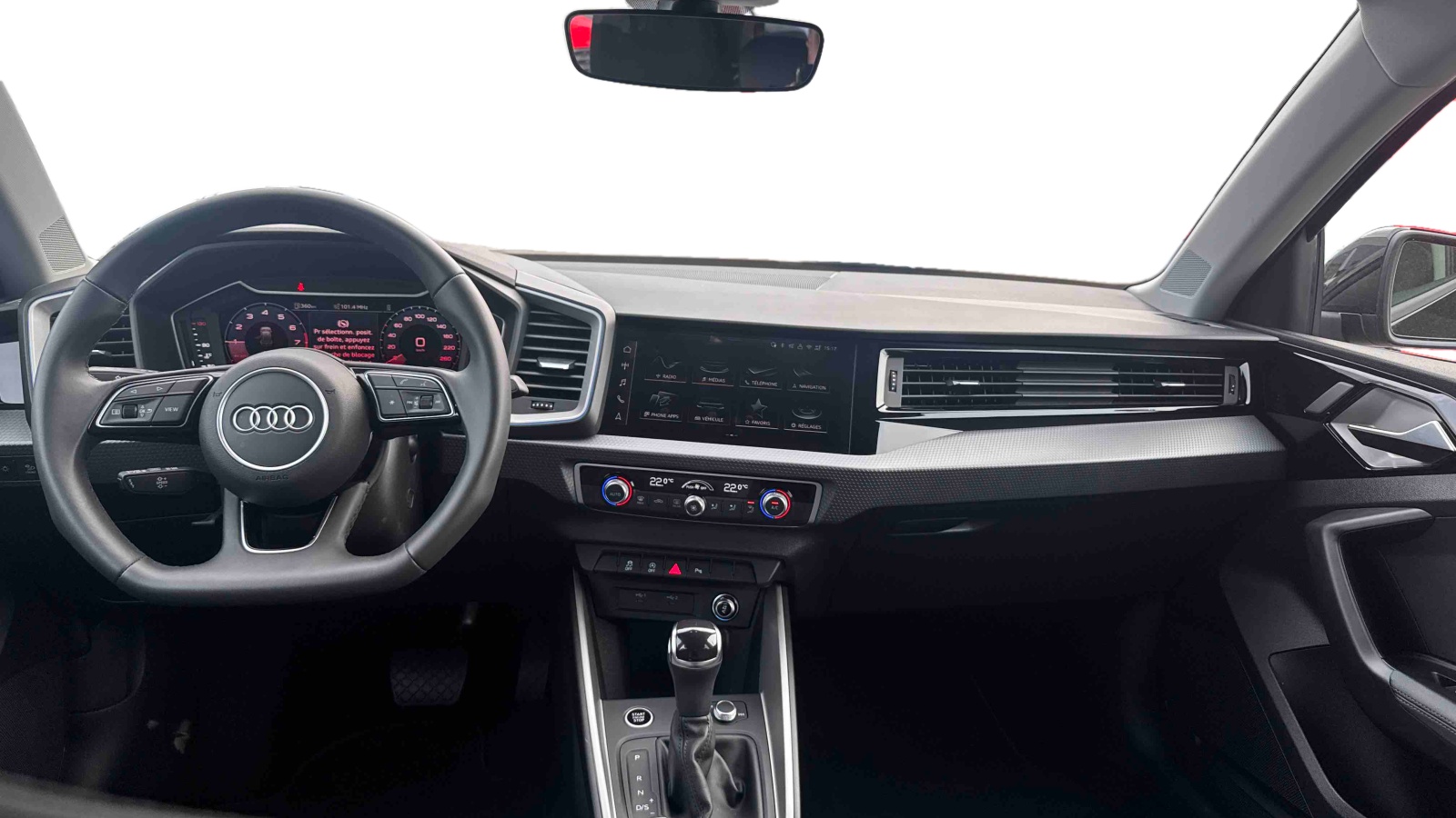 - Volant Sport contour en cuir style 3 branches à méplat avec multifonctions plus et palettes de changement de vitesses