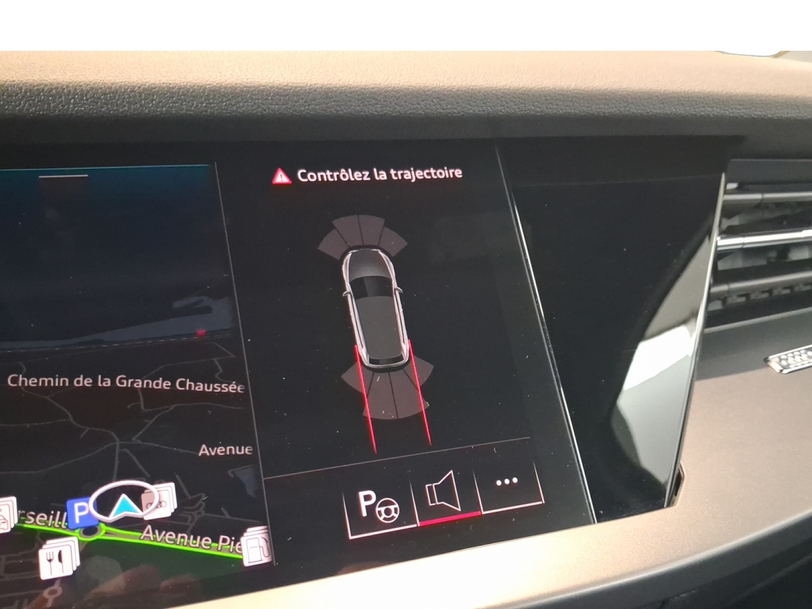 - Audi park assist : cherche à l'aide de capteurs à ultrasons les places de stationnement (bataille et créneau) appropriées le long de la chaussée, calcule le créneau idéal et gère le braquage automatiquement