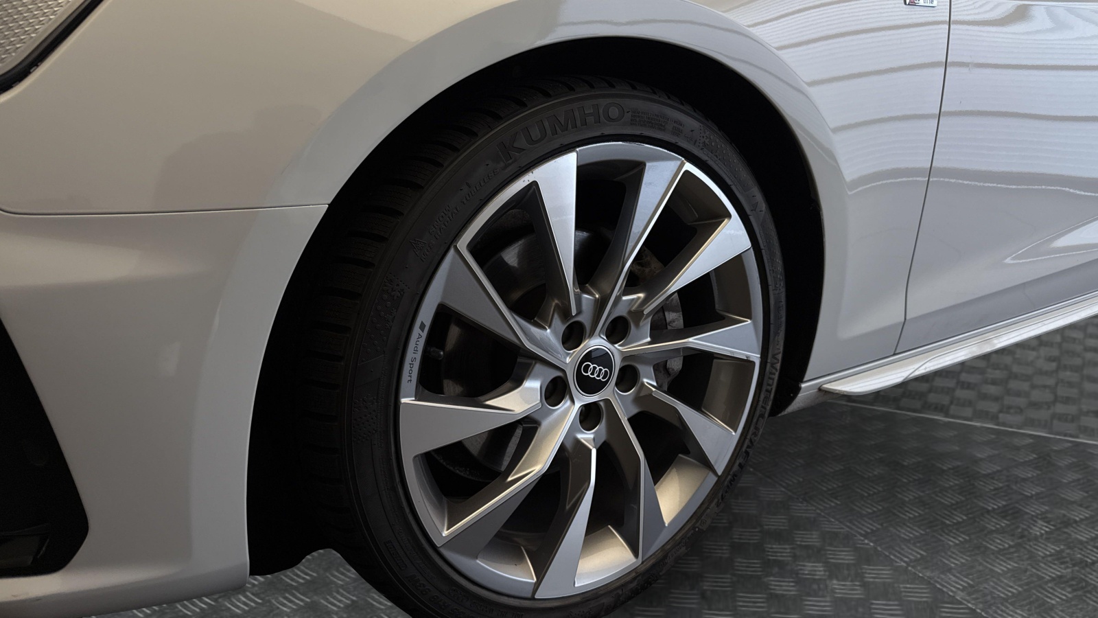 - Jantes en aluminium coulé Audi Sport 5 branches trapézoïdal, finition titane mat, polies brillant Dimension : 8,0 J x 18" Pneus : 245/40 R 18