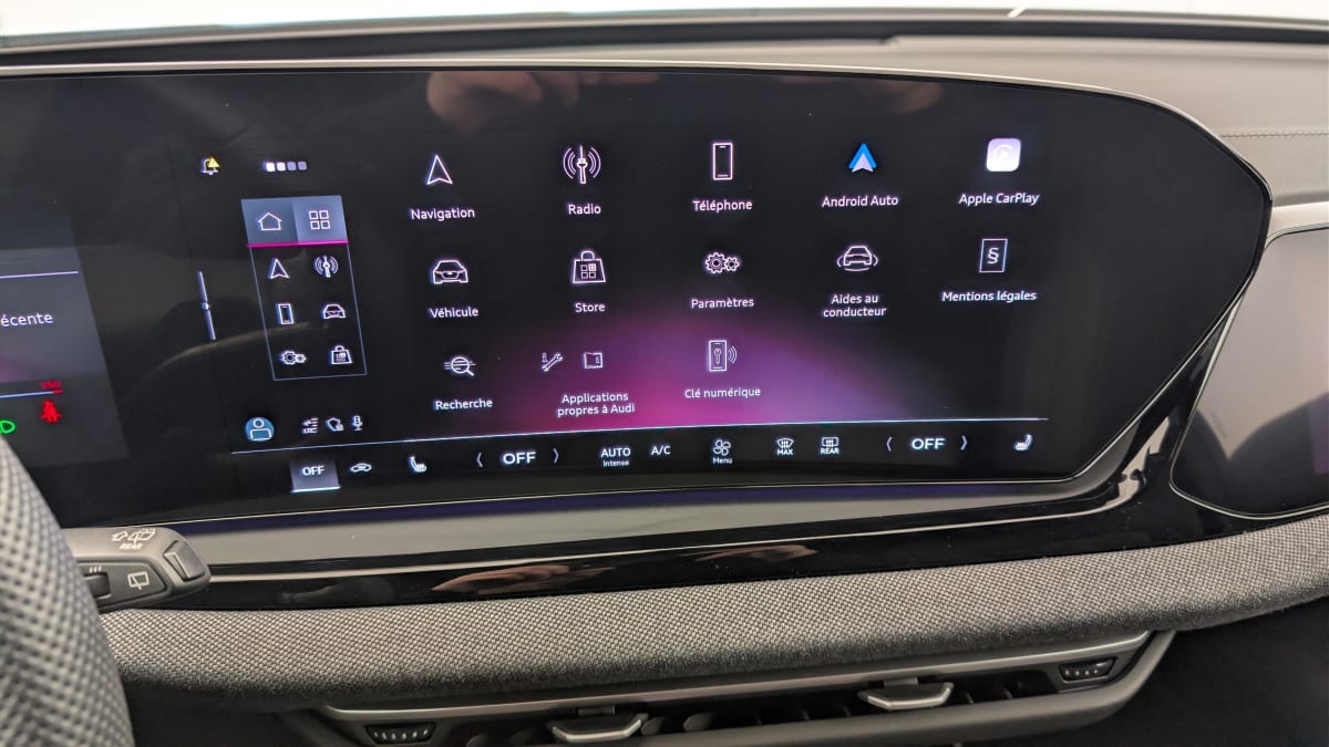 - Navigation MMI avec MMI touch Le système de navigation MMI plus avec MMI touch offre : - l'écran panoramique MMI avec technologie OLED, comprenant l'Audi virtual cockpit plus avec écran de 11,9 pouces ainsi que l'écran MMI touch de14,5" - système de navigation avec affichage des cartes et guidage routier sur l'écran couleur haute résolution de 14,5" - mise à jour des cartes en ligne - Affichage de cartes en 3D montrant de nombreux sites d'intérêt - informations routières en ligne - MMI search - MMI touch