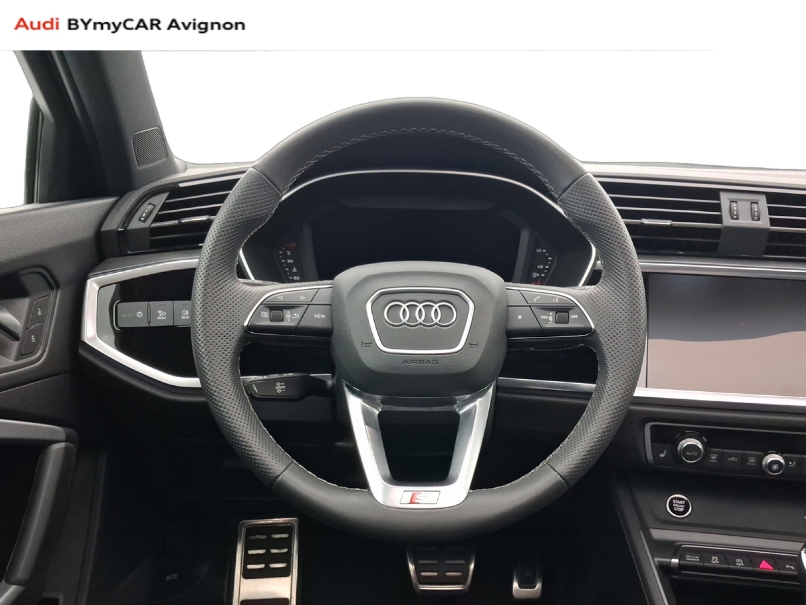 - Pack S line intérieur - Sièges Sport AV - Sellerie en tissu/matériaux synthétiques monopur 550 et estampillage S line sur le dossier des sièges AV - Frein à main avec surpiqûres contrastées, couleur assortie à celle de l'habitacle - Surfaces d'accentuation sur la console centrale et poignées intérieures de portières à l'AV de couleur laque fine gris ardoise - Pédalier et repose-pied en acier inoxydable - Tapis noirs AV et AR avec surpiqûres contrastées gris roche