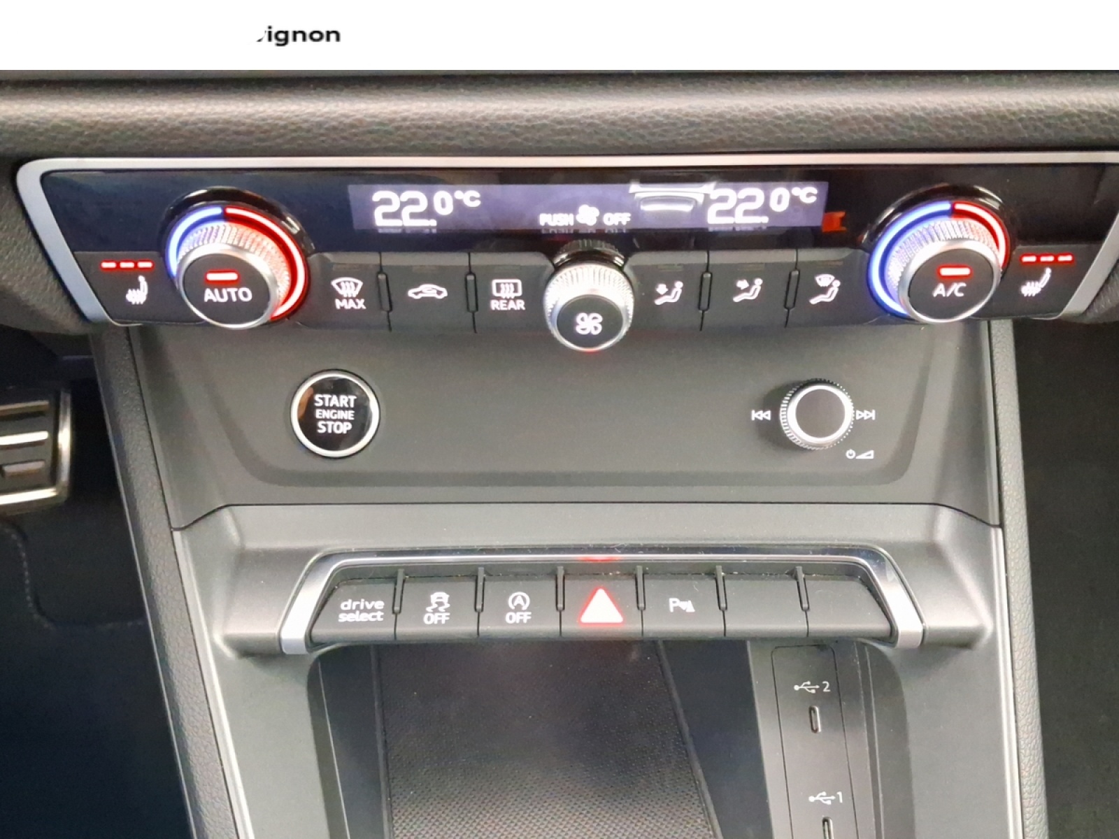- 2 prises USB AR (type-C) et prise 12V dans la console centrale AR