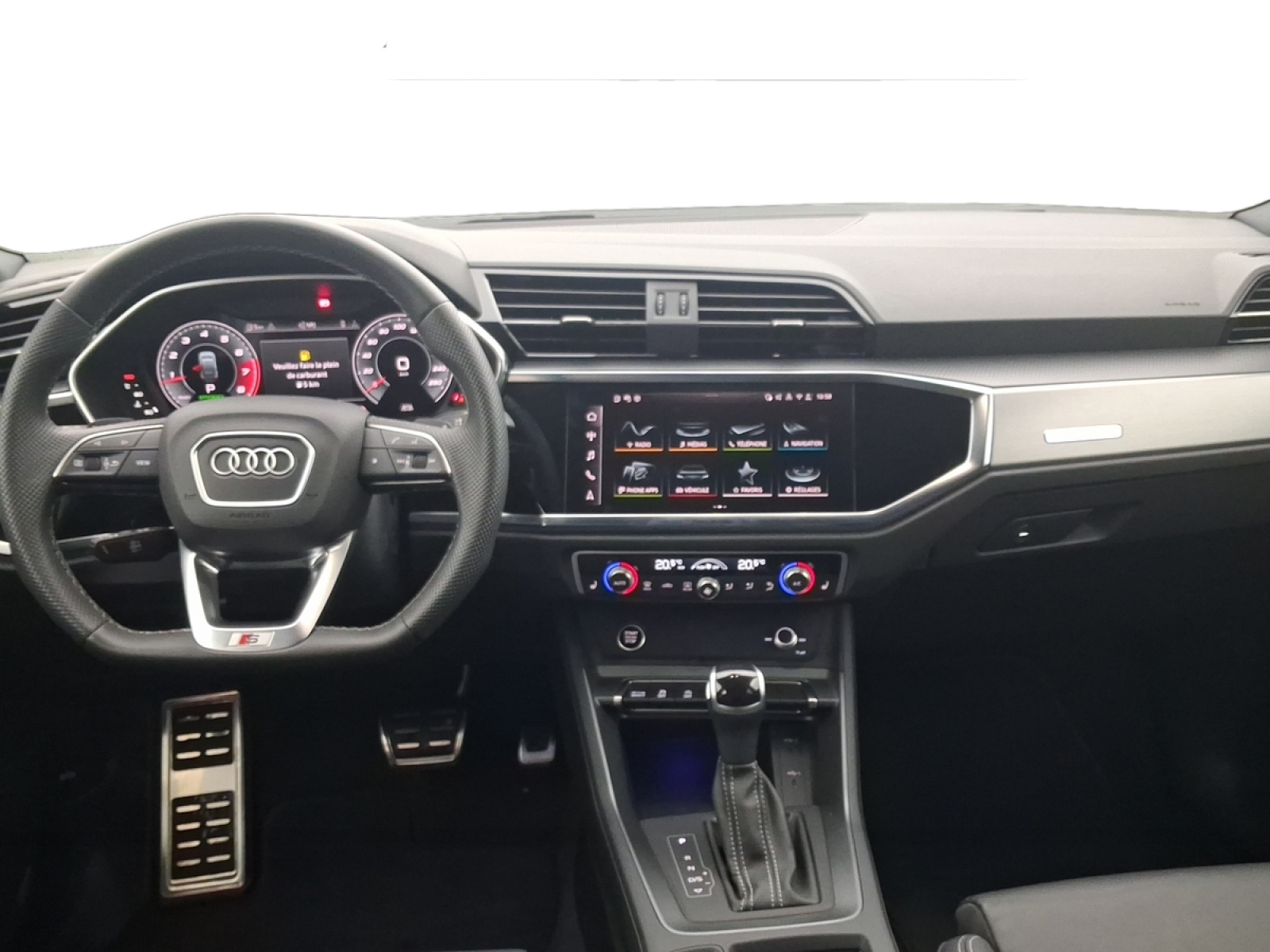 - Pack S line intérieur - Sièges Sport AV - Sellerie en tissu/matériaux synthétiques monopur 550 et estampillage S line sur le dossier des sièges AV - Frein à main avec surpiqûres contrastées, couleur assortie à celle de l'habitacle - Surfaces d'accentuation sur la console centrale et poignées intérieures de portières à l'AV de couleur laque fine gris ardoise - Pédalier et repose-pied en acier inoxydable - Tapis noirs AV et AR avec surpiqûres contrastées gris roche