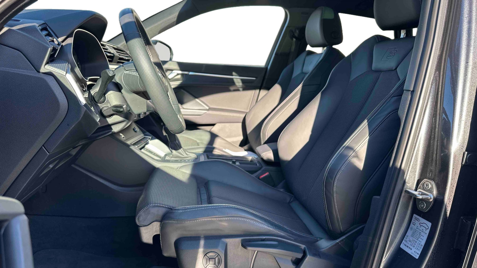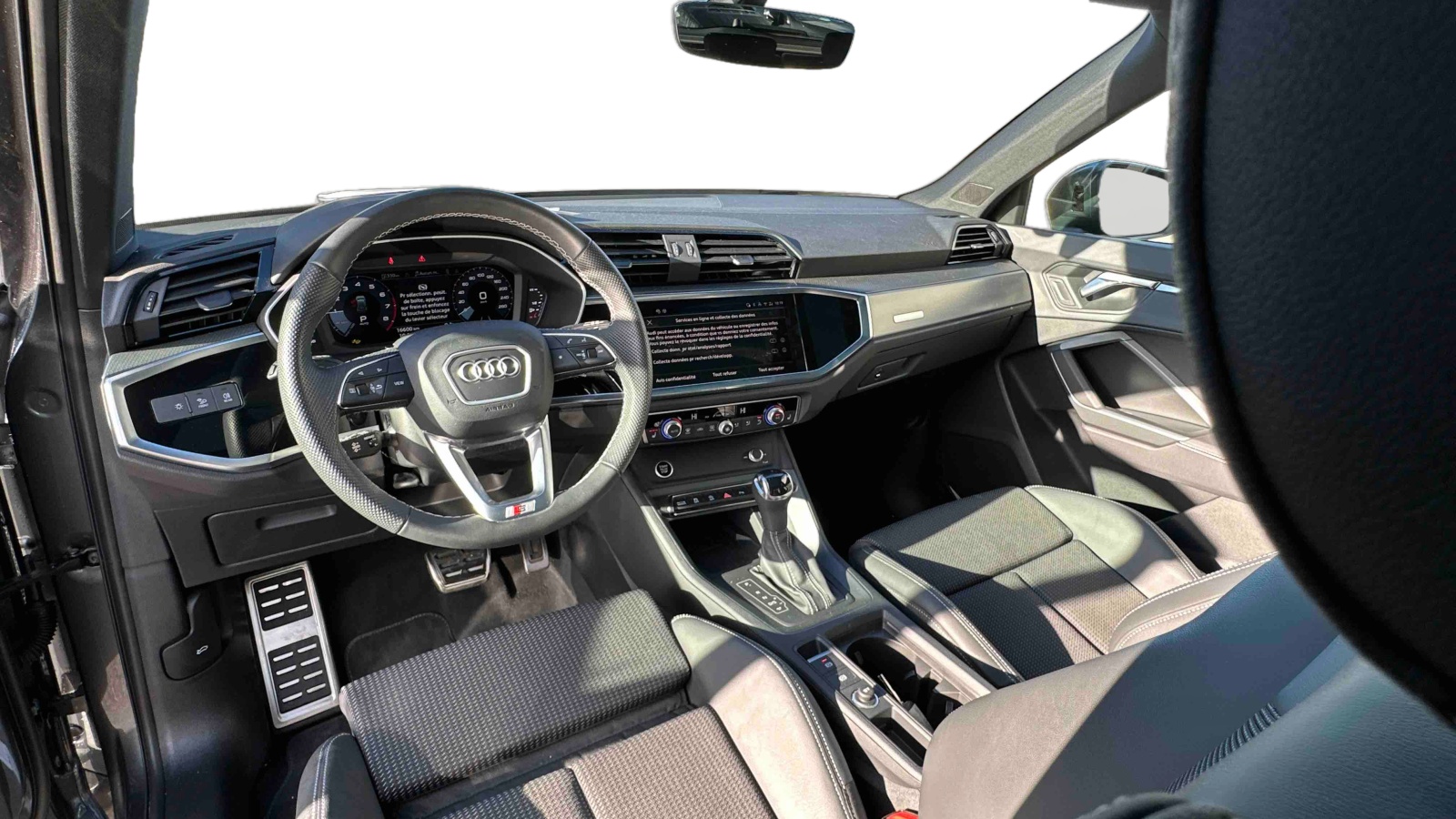 - Pack S line intérieur - Sièges Sport AV - Sellerie en tissu/matériaux synthétiques monopur 550 et estampillage S line sur le dossier des sièges AV - Frein à main avec surpiqûres contrastées, couleur assortie à celle de l'habitacle - Surfaces d'accentuation sur la console centrale et poignées intérieures de portières à l'AV de couleur laque fine gris ardoise - Pédalier et repose-pied en acier inoxydable - Tapis noirs AV et AR avec surpiqûres contrastées gris roche