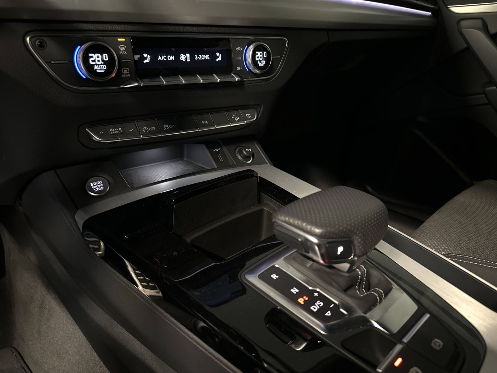 - Audi Phone Box avec charge du téléphone par induction (standard Qi)