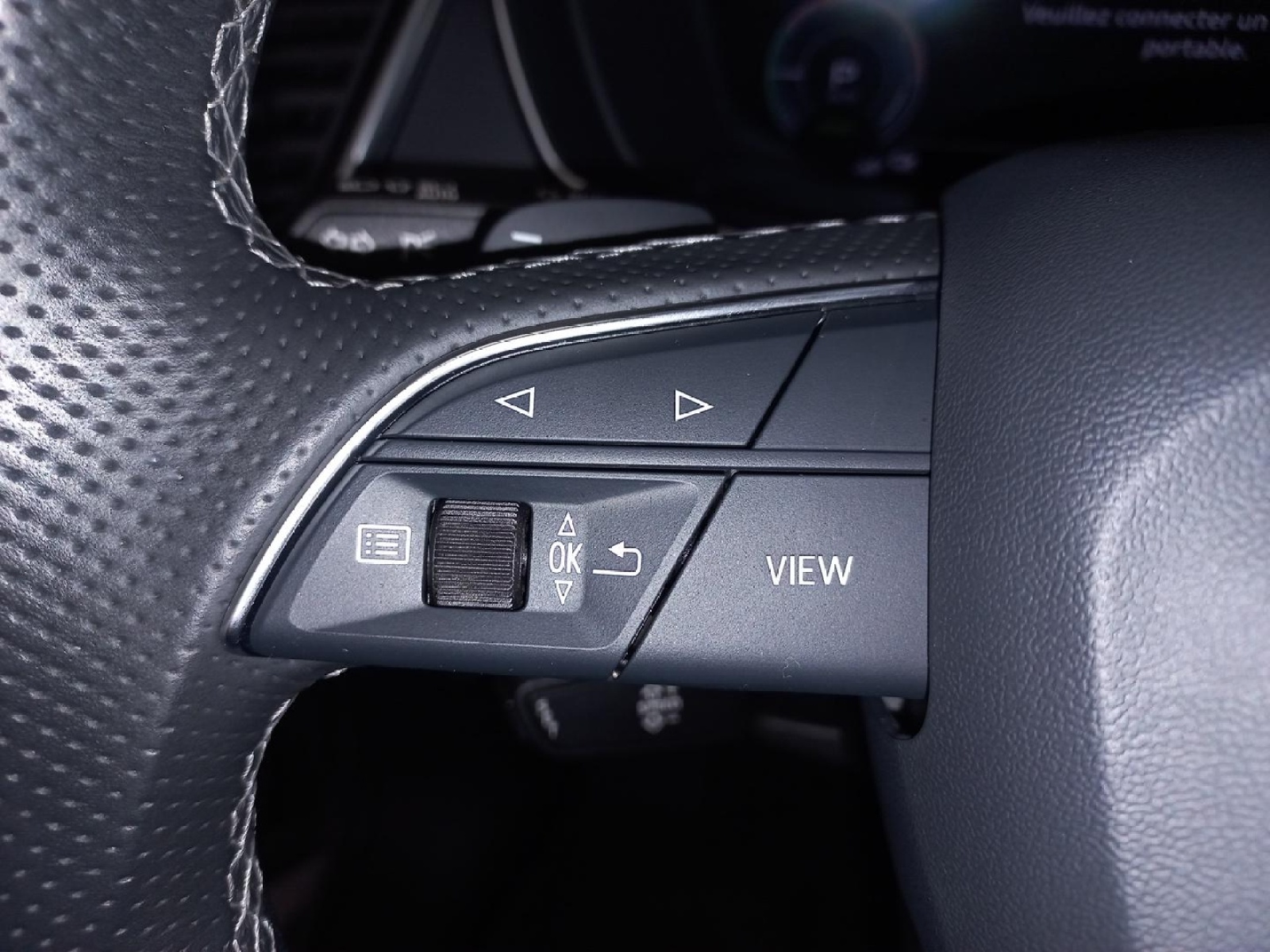 - Volant Sport contour en Cuir style 3 branches aplati en bas avec multifonction plus avec palettes de changement de vitesses