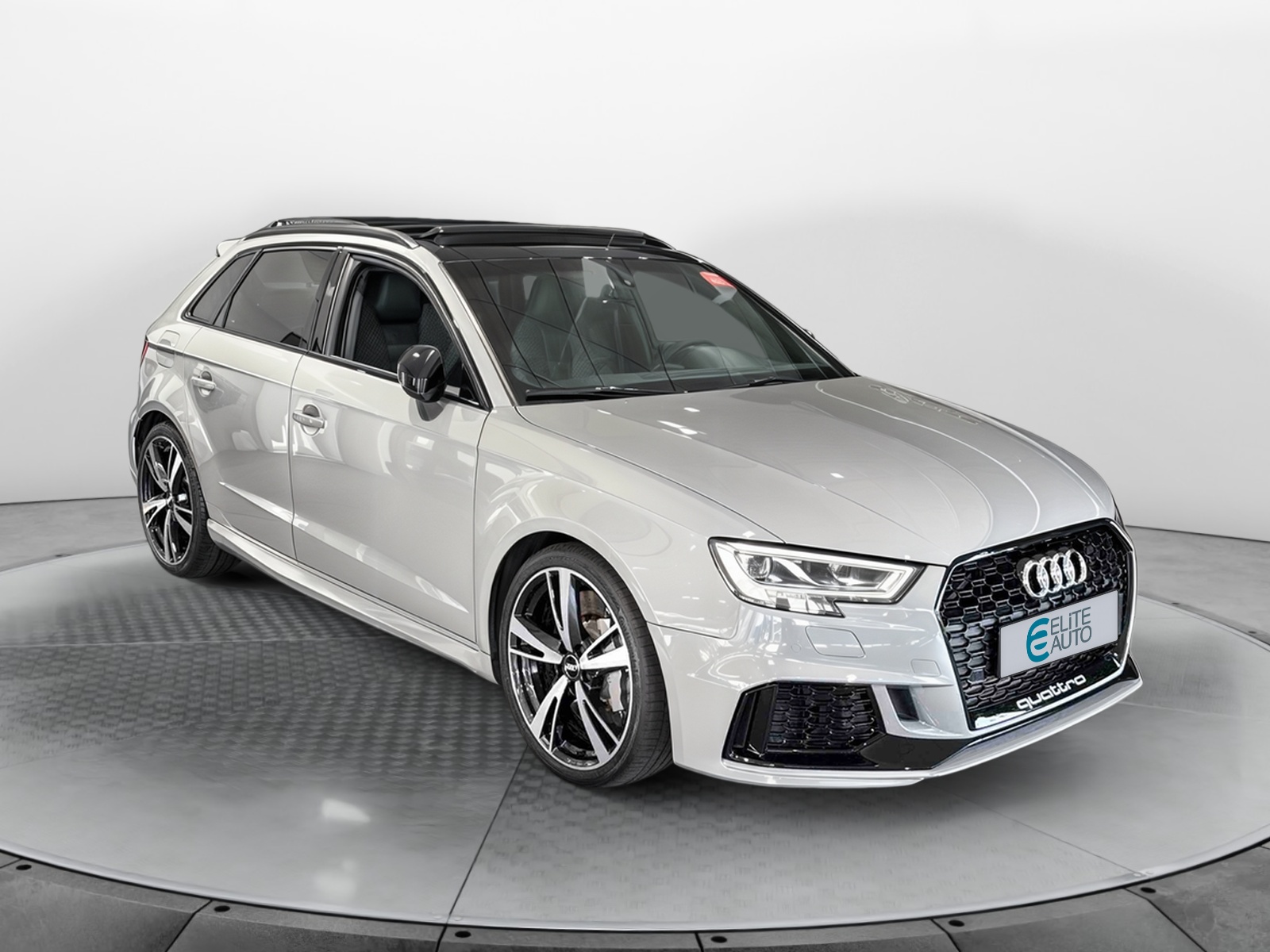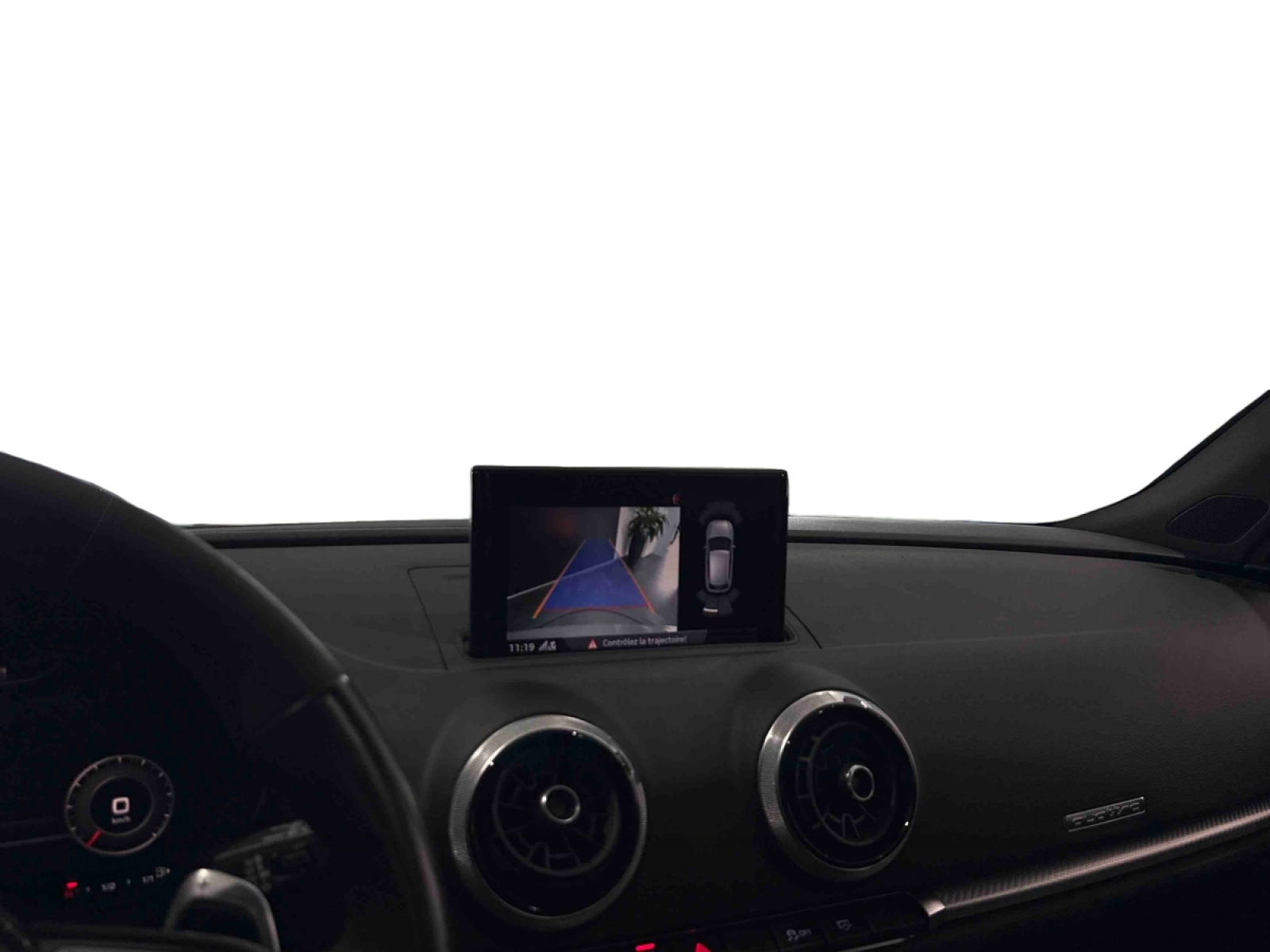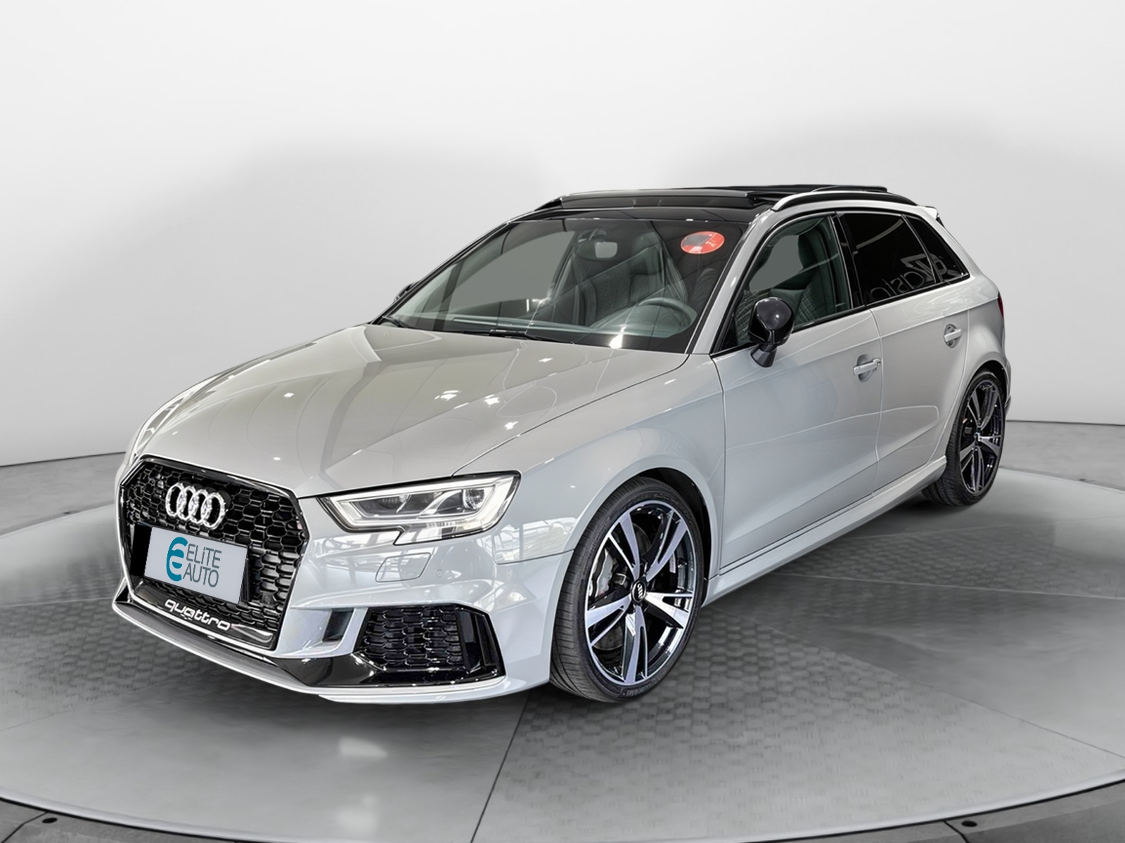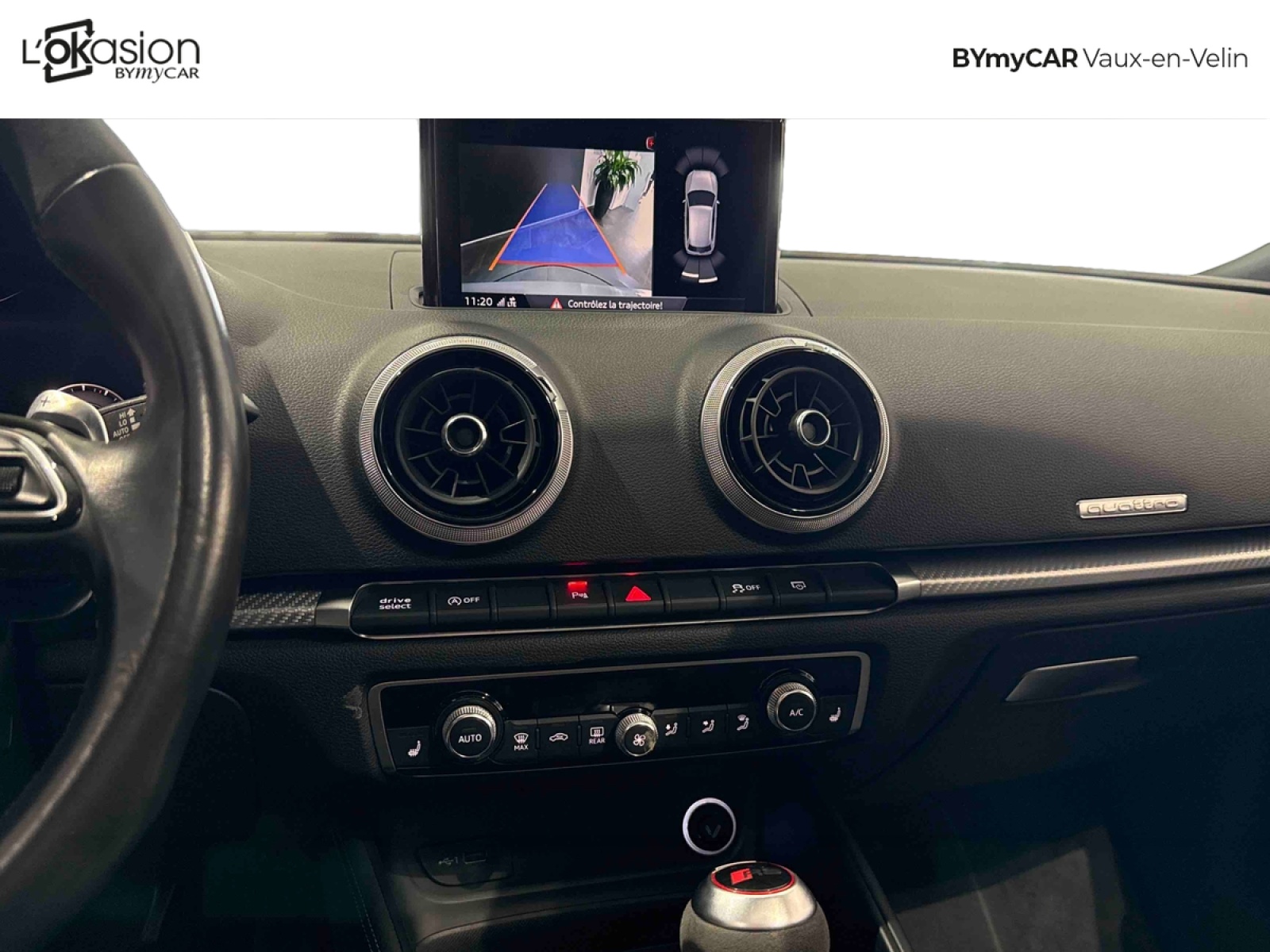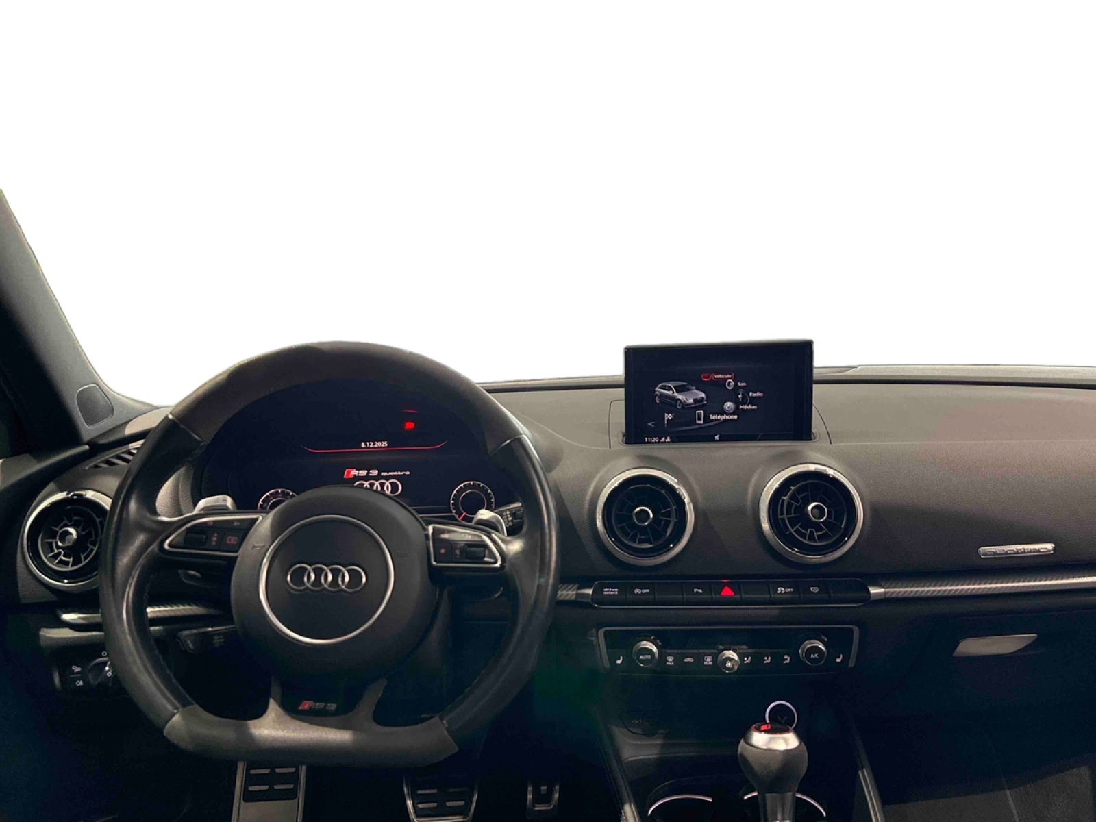 - Inscription RS3 sur la calandre, le capot de coffre, les baguettes des seuils de portes, le volant Sport, le pommeau de levier de vitesse et le compte-tours