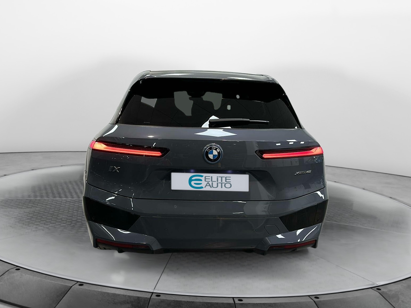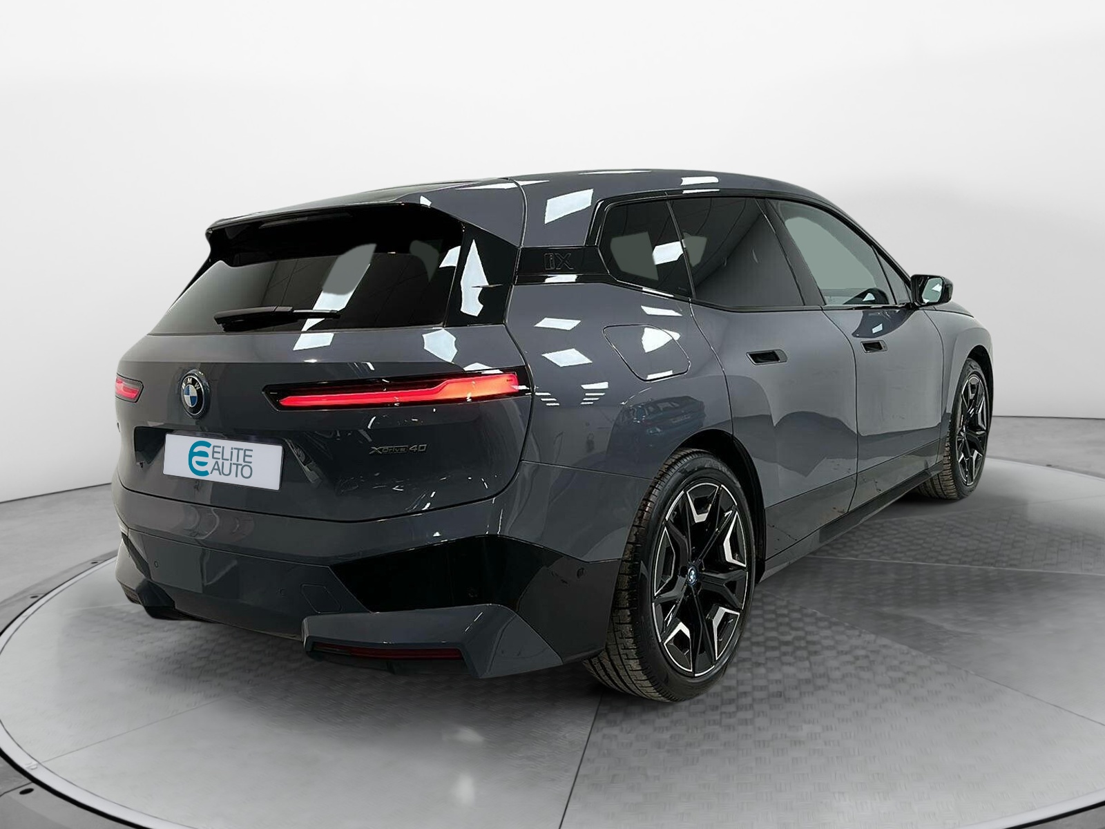 - Désignation du modèle "iX" sur le hayon, à gauche, et "xDrive40", à droite, teinte Silver