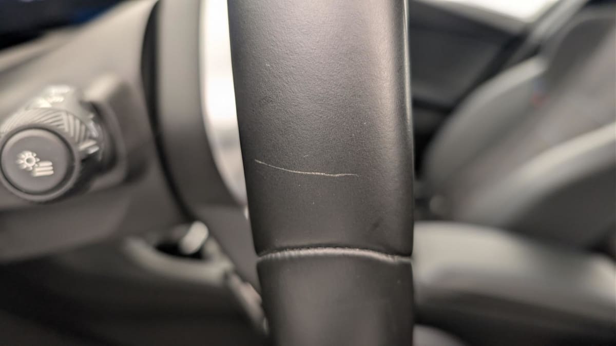 - Volant M gainé cuir (avec surpiqûres noires) Trois branches. Jante en cuir noir 'Walknappa', inserts chrome perlé et repose-pouce dans le volant. Logo M sur la base du volant