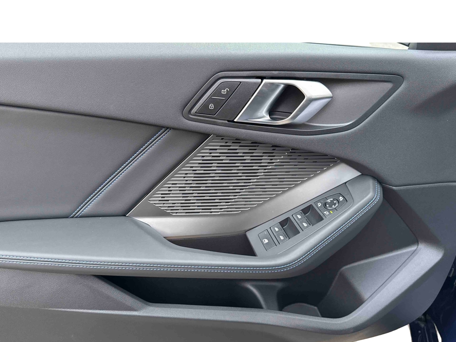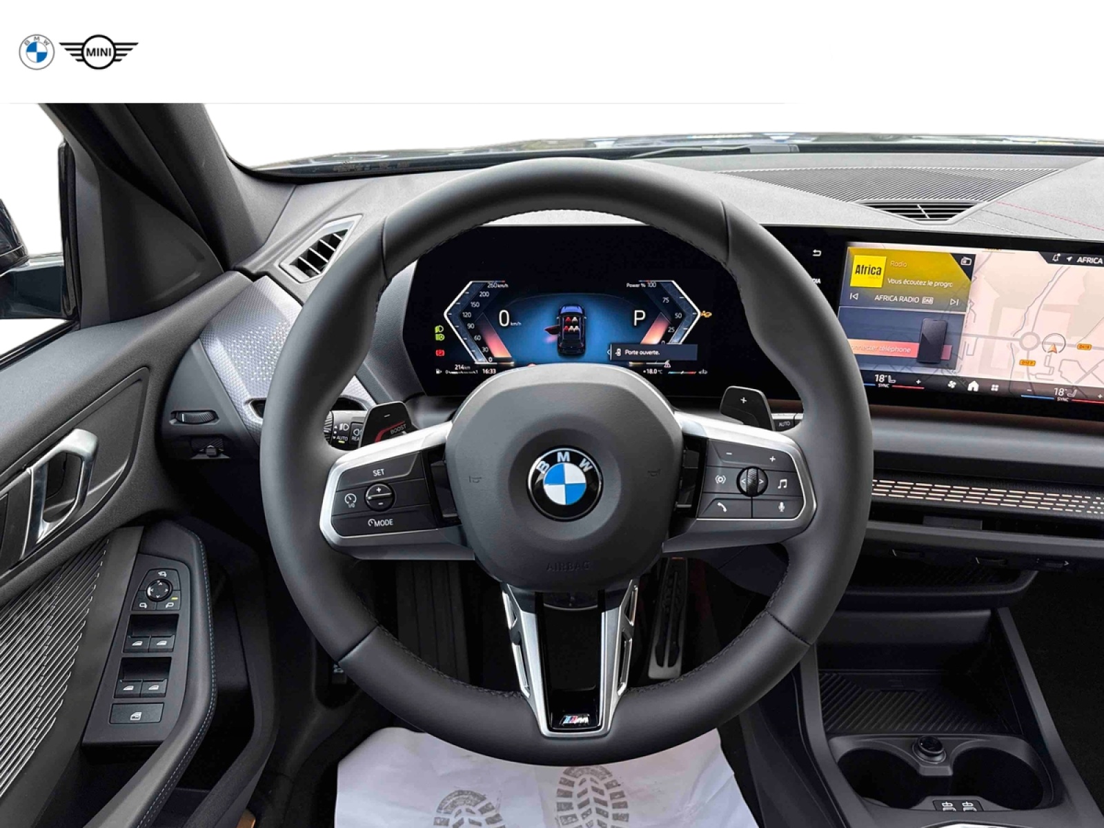 - Volant M gainé cuir (avec surpiqûres noires) Trois branches. Jante en cuir noir 'Walknappa', inserts chrome perlé et repose-pouce dans le volant. Logo M sur la base du volant