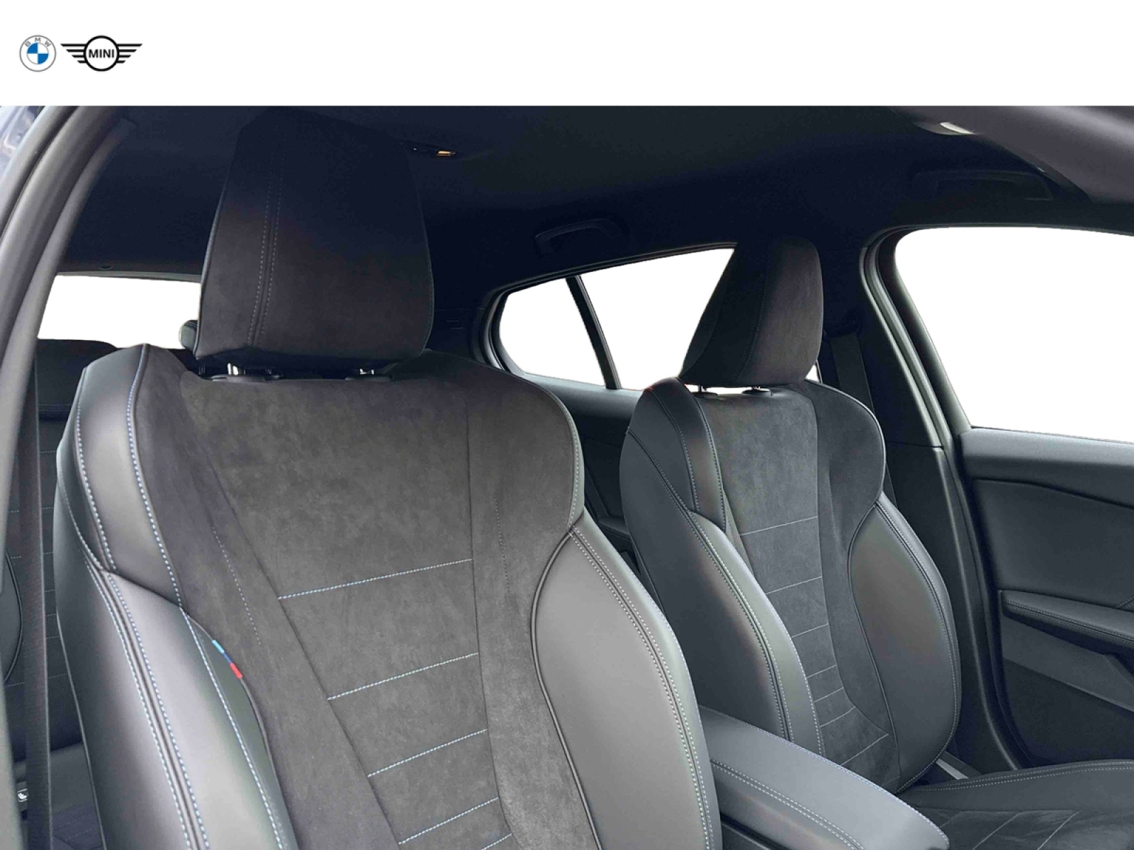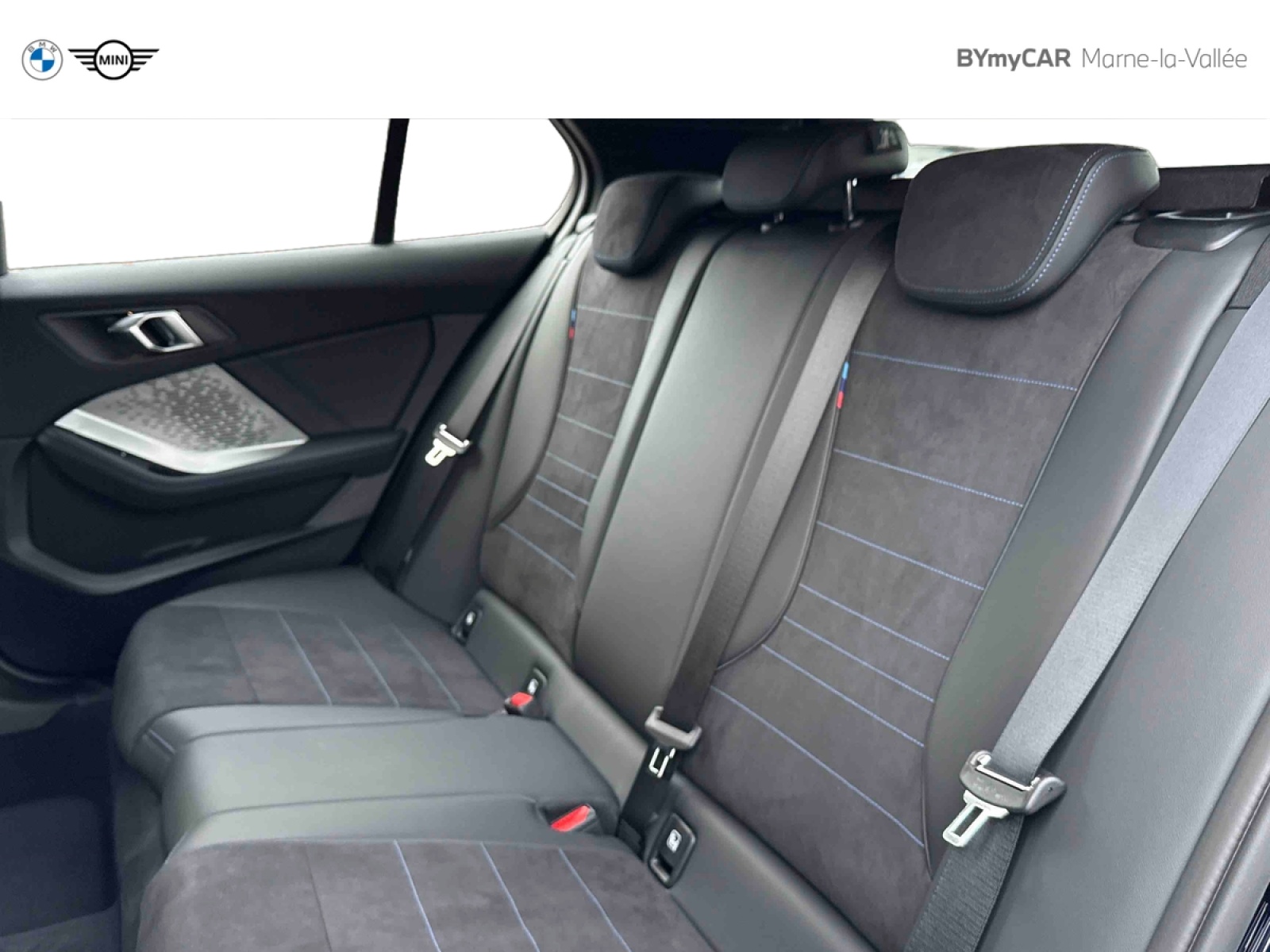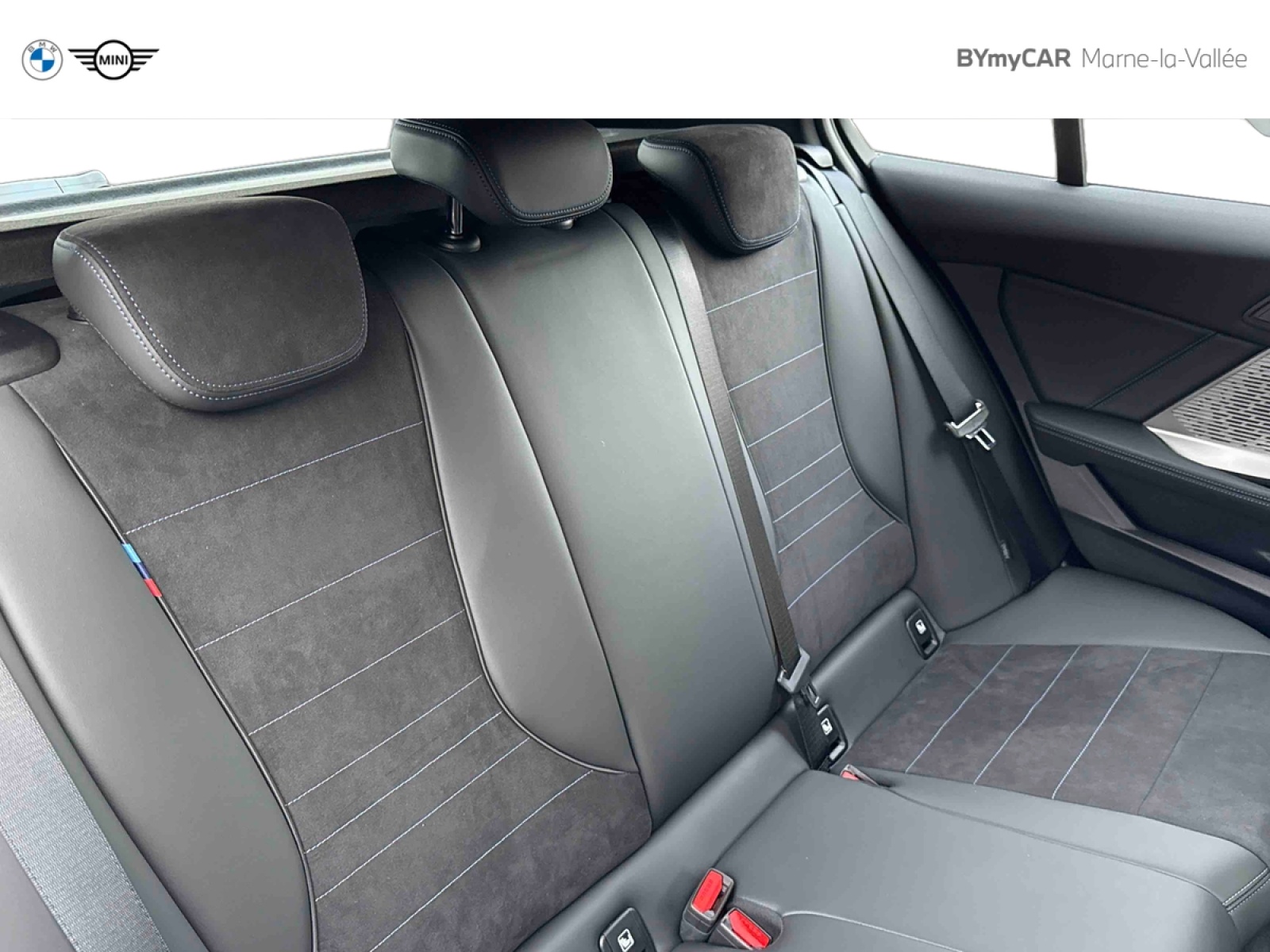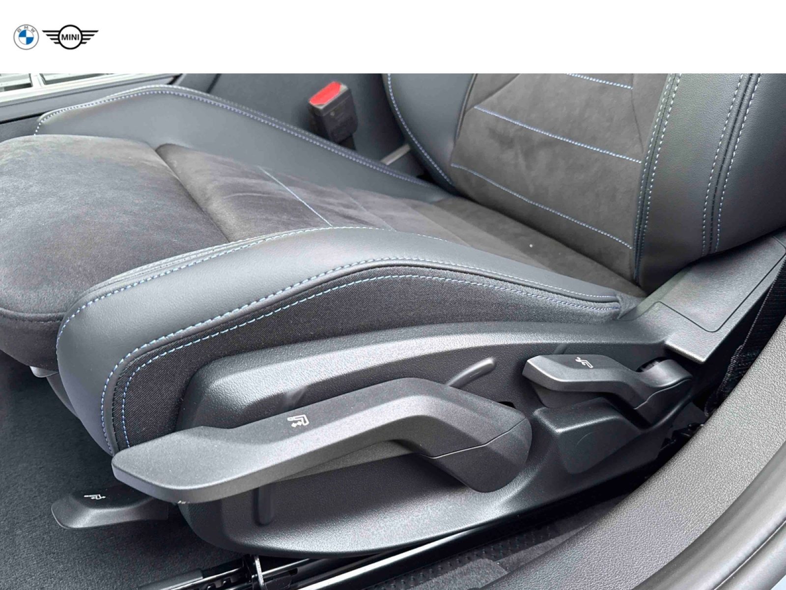 - Sellerie Alcantara / Similicuir Veganza Schwarz avec surpiqûres bleues