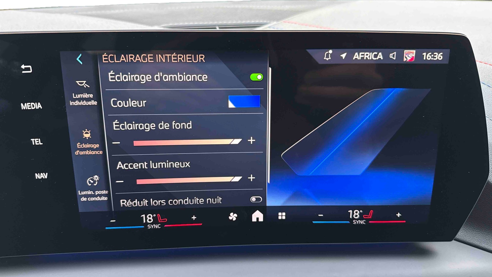 - Eclairage intérieur - Lampes de courtoisie - Eclairage habitacle AV et AR, y compris éclairage d'ambiance - Eclairage coffre à bagages sur le coté droit - Eclairage intérieur du compartiement de rangement dans l'accoudoir central - Lampes de lecture à l'AV et à l'AR - Eclairage plancher AV et AR