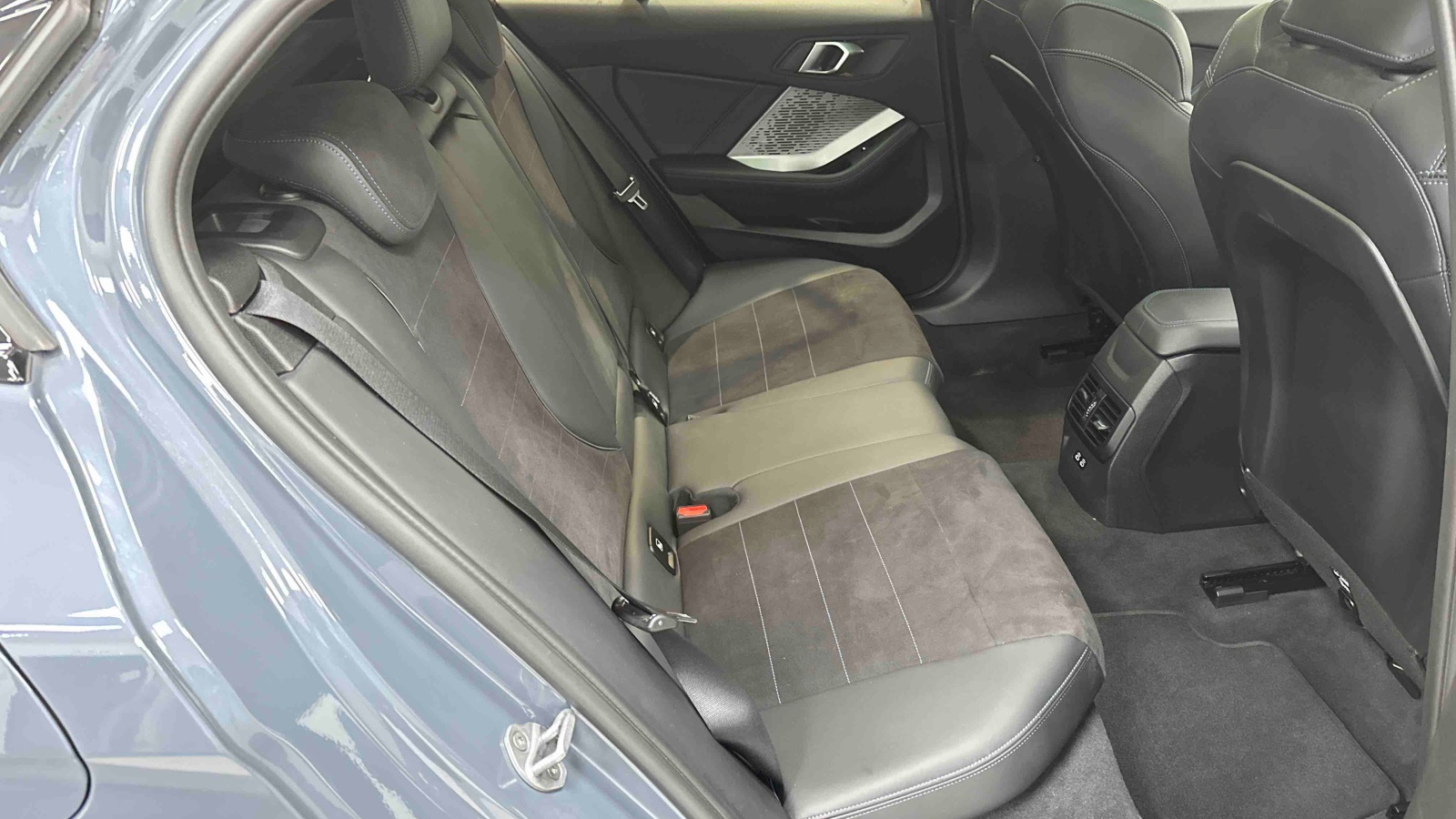 - Sellerie Alcantara / Similicuir Veganza Schwarz avec surpiqûres bleues