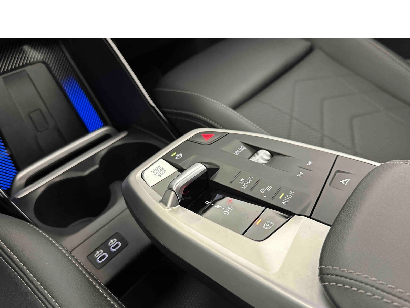 - Sellerie Alcantara / Veganza "Schwarz" avec surpiqûres contrastantes bleues