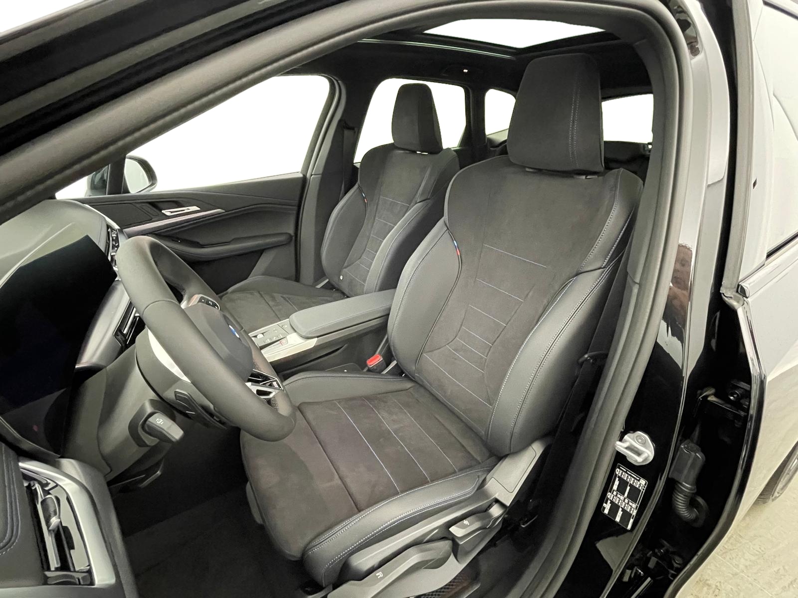 - Sellerie Alcantara / Veganza "Schwarz" avec surpiqûres contrastantes bleues