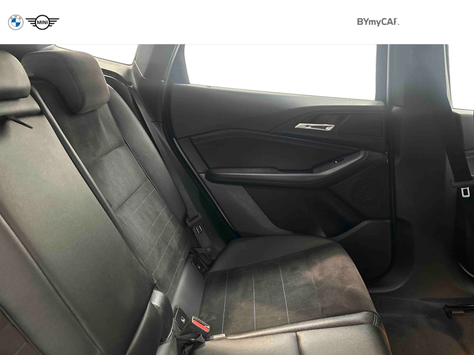 - Sellerie Alcantara / Similicuir Sensatec "Schwarz" avec surpiqûres contrastantes Bleues