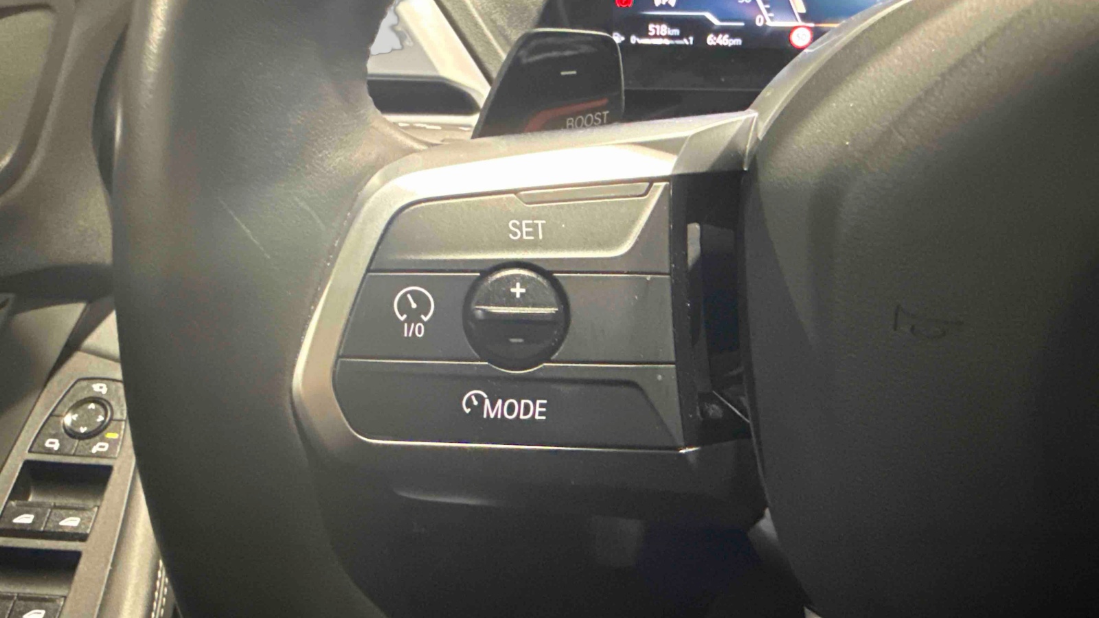 - Volant M gainé cuir Trois branches. Jante en cuir noir 'Walknappa', inserts chrome perlé et repose-pouce dans le volant. Logo M sur la base du volant.Palettes de changement de rapport avec fonction BOOST.