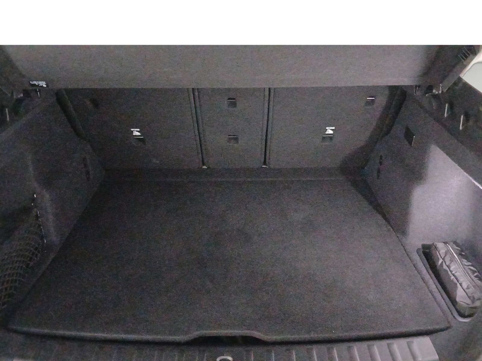 - Compartiment à bagages : 2 crochets de sac, filet sur panneau garuche, prise 12V, rangement additionel au modèle) sous plancher amovible
