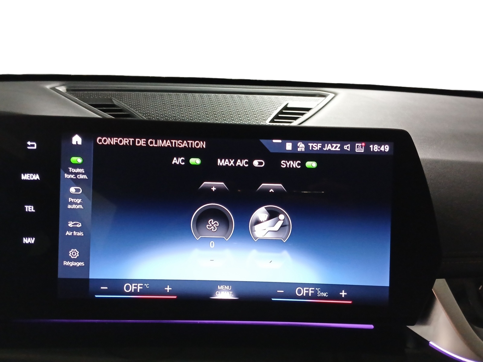 - Climatisation automatique 2 zones Contrôle de la température et du volume d'air distribué avec 5 niveaux d'intensité, réglables séparément entre le conducteur et le passager. Fonctionnalité SYNC pour que les réglages du conducteur s'appliquent à l'ensemble de l'habitacle. Contrôle commun de la température à l'AR. Capteur d'humidité et d'ensoleillement, filtre à charbon actif et microfiltre.