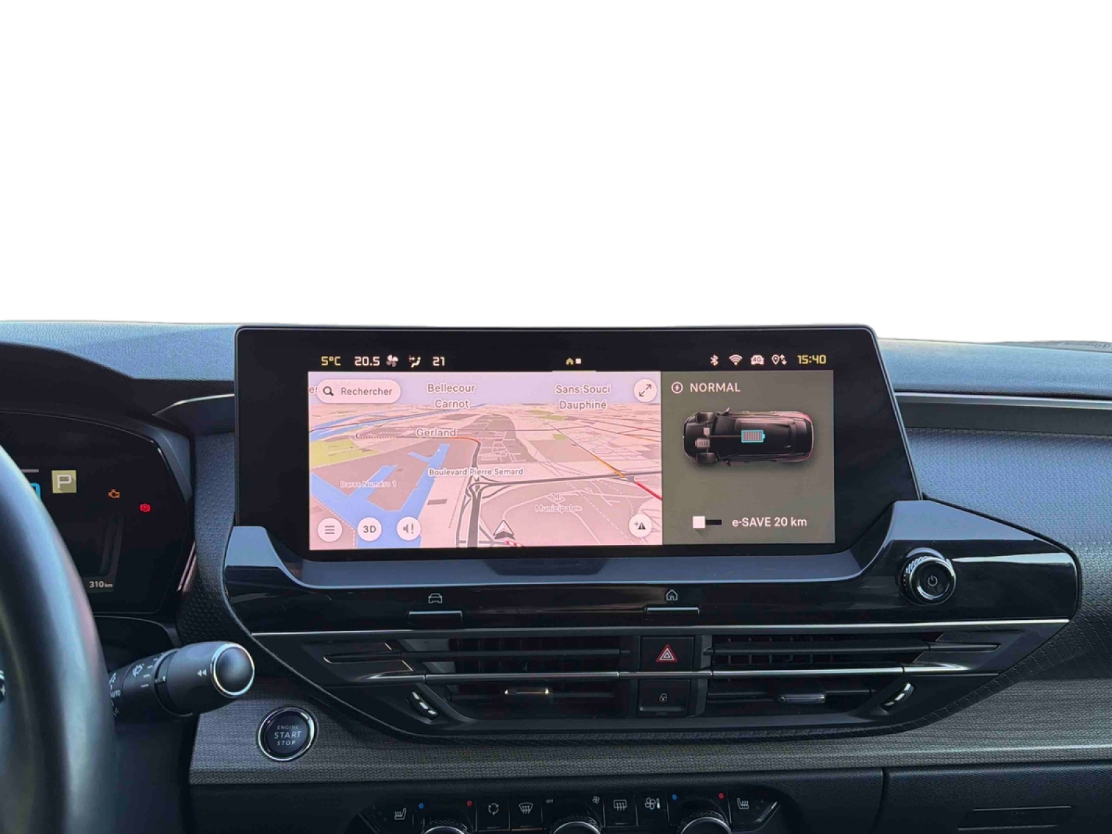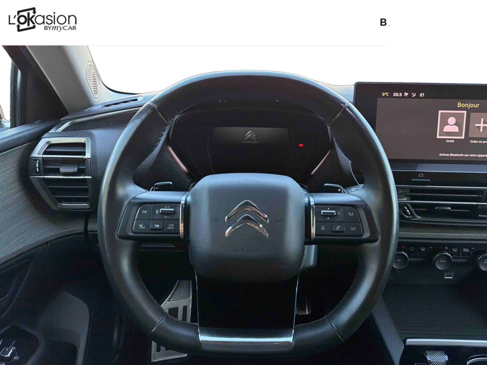 - Volant cuir avec commandes intégrées, réglable en hauteur et en profondeur
