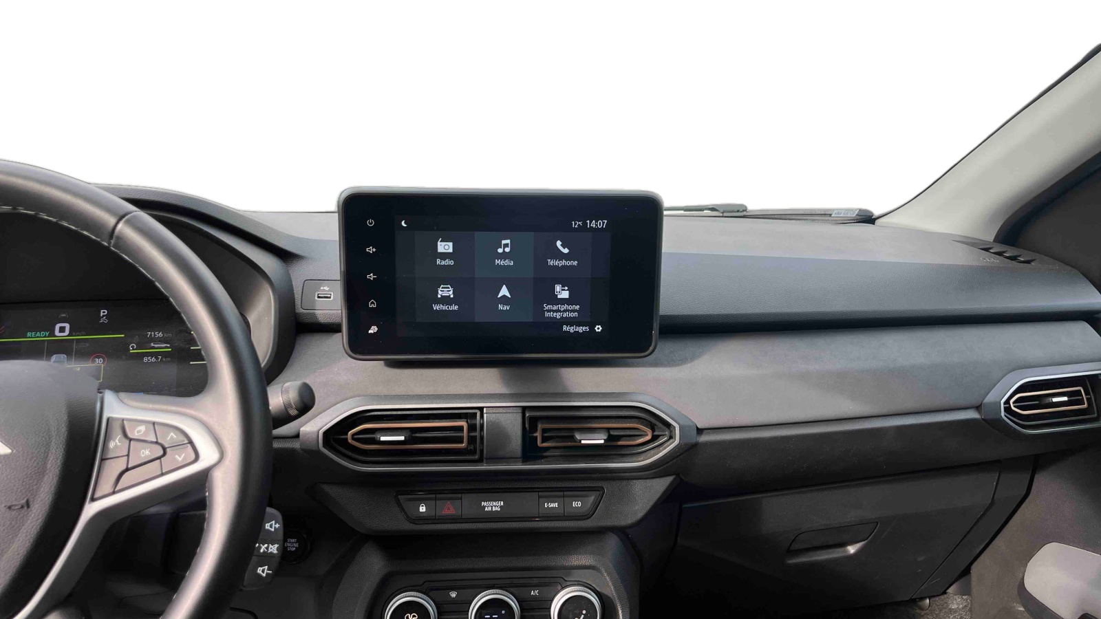- Media display (écran 8'', réplication smartphone, 4 haut-parleurs, 1 port USB)