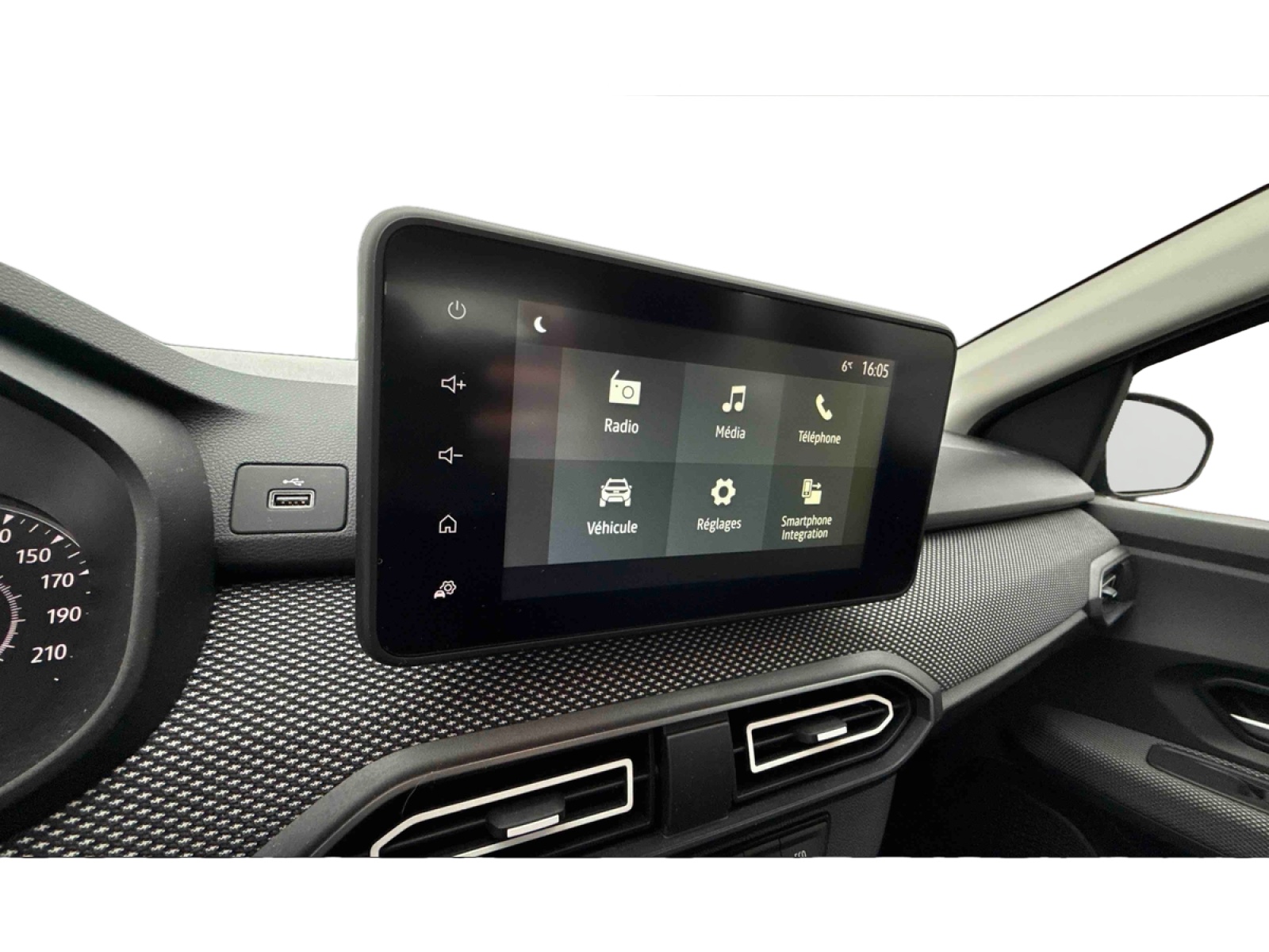 - Media display (écran 8'', réplication smartphone, 4 haut-parleurs, 1 port USB)