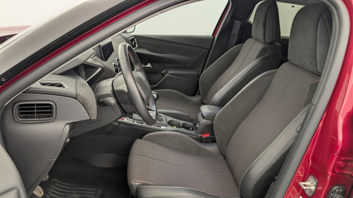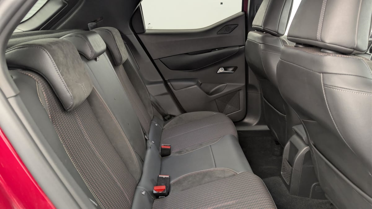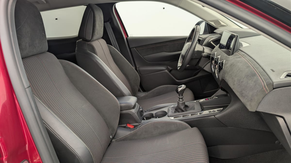 - Intérieur Tissu tressé Basalte avec Alcantara : Planche de bord Alcantara Noir Ciel de pavillon Gris Galet Volant Cuir fleur perforé et coutures Or et Carmin Décor Alcantara Noir Siège Tissu Tressé Basalte avec Alcantara