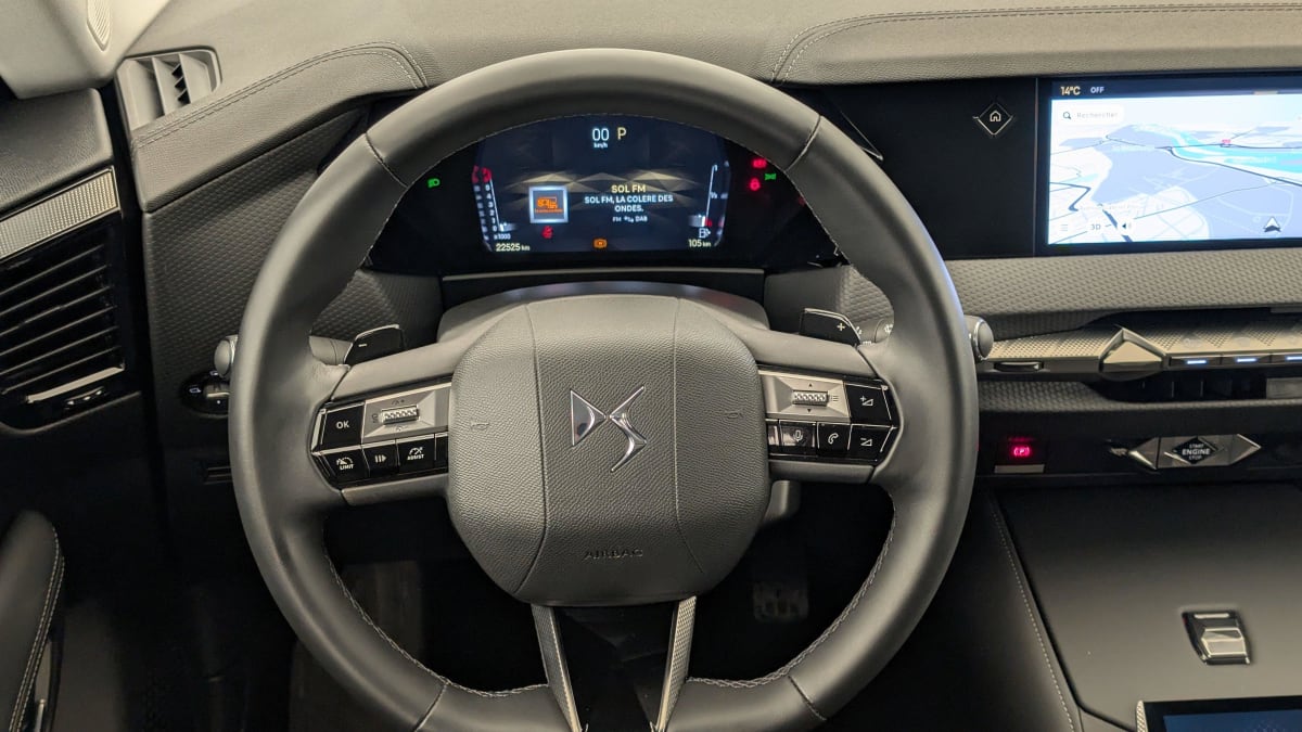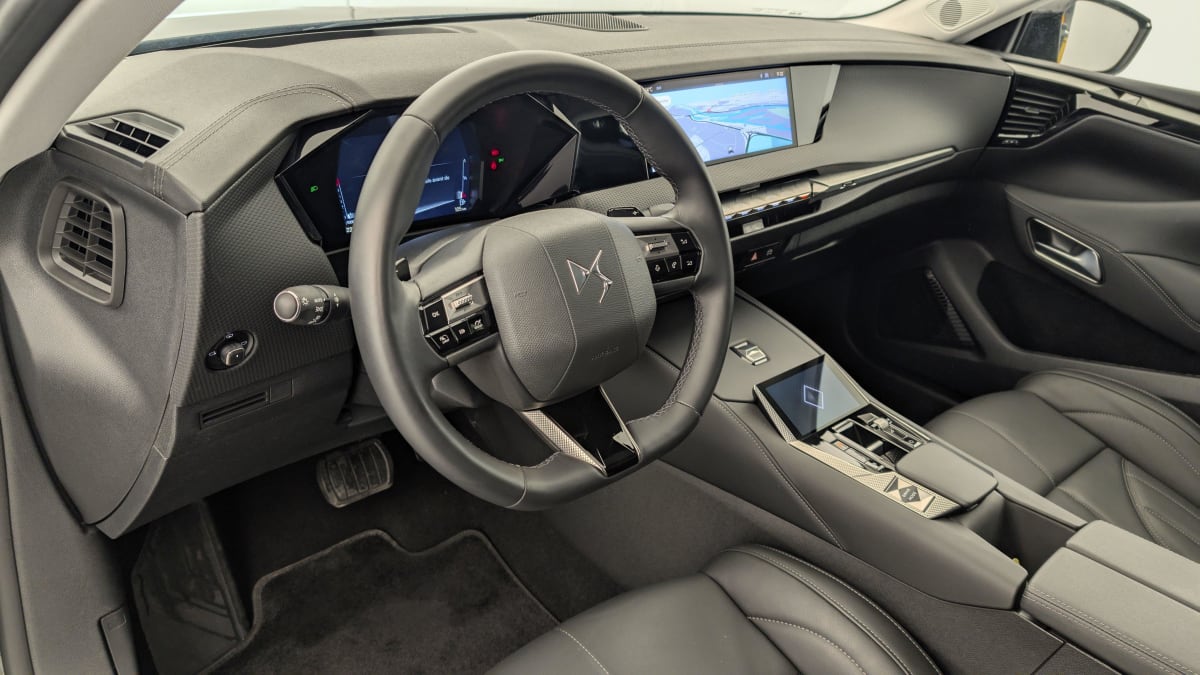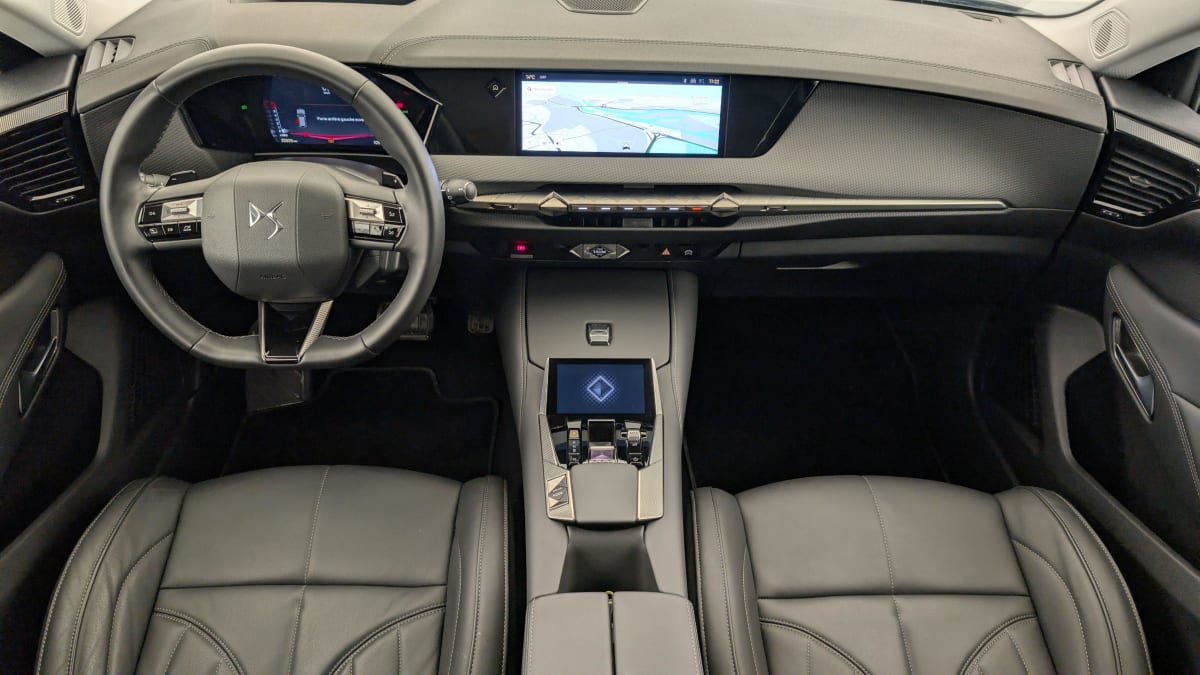 - Intérieur Cuir grainé Noir Basalte et Toile DS : Ciel de pavillon clair Décors de panneaux de porte Chrome guilloché Volant en cuir fleur Mistral Console centrale en Toile DS Mistral Planche de bord en toile DS Noir Basalte façon écaille Panneaux de portes en toile DS Noir Basalte façon écaille Sellerie en Cuir grainé Noir Basalte et Toile DS