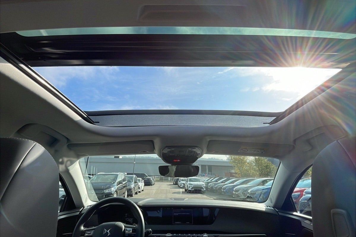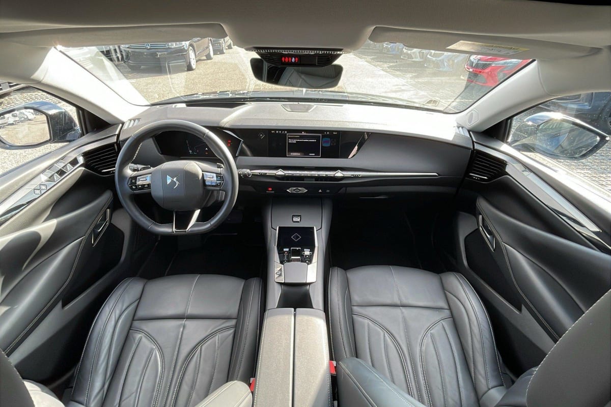 - Intérieur Cuir grainé Noir Basalte et Toile DS : Ciel de pavillon clair Décors de panneaux de porte Chrome guilloché Volant en cuir fleur Mistral Console centrale en Toile DS Mistral Planche de bord en toile DS Noir Basalte façon écaille Panneaux de portes en toile DS Noir Basalte façon écaille Sellerie en Cuir grainé Noir Basalte et Toile DS