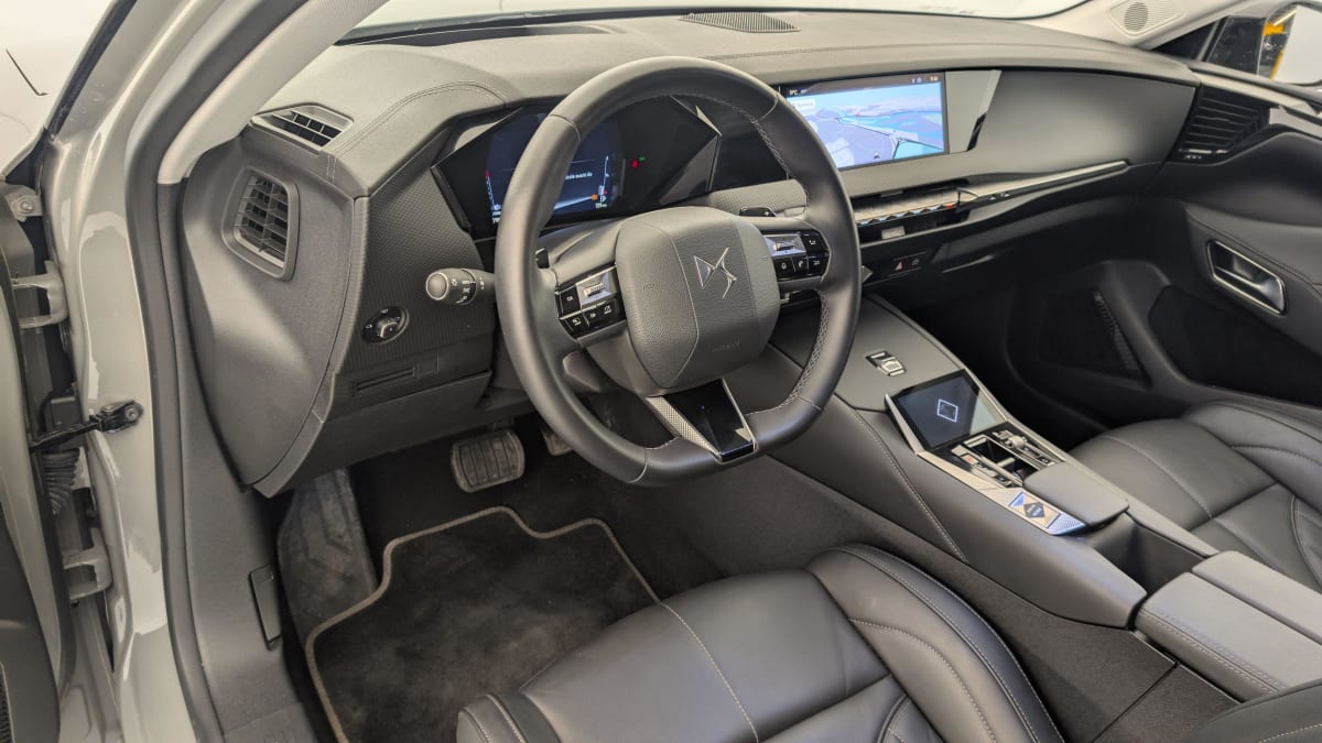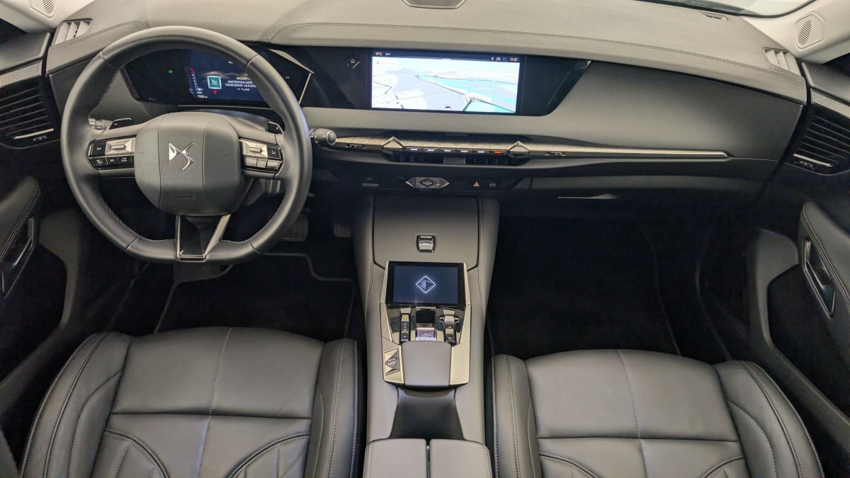 - Intérieur Cuir grainé Noir Basalte et Toile DS : Ciel de pavillon clair Décors de panneaux de porte Chrome guilloché Volant en cuir fleur Mistral Console centrale en Toile DS Mistral Planche de bord en toile DS Noir Basalte façon écaille Panneaux de portes en toile DS Noir Basalte façon écaille Sellerie en Cuir grainé Noir Basalte et Toile DS Parties centrales des sièges AV, partie centrale des sièges latéraux AR et partie AV des appuie-tête en cuir. Bourrelets latéraux des sièges AV, accoudoir central et siège central AR, et parties latérales et AR des appuis tête en Toile DS.
