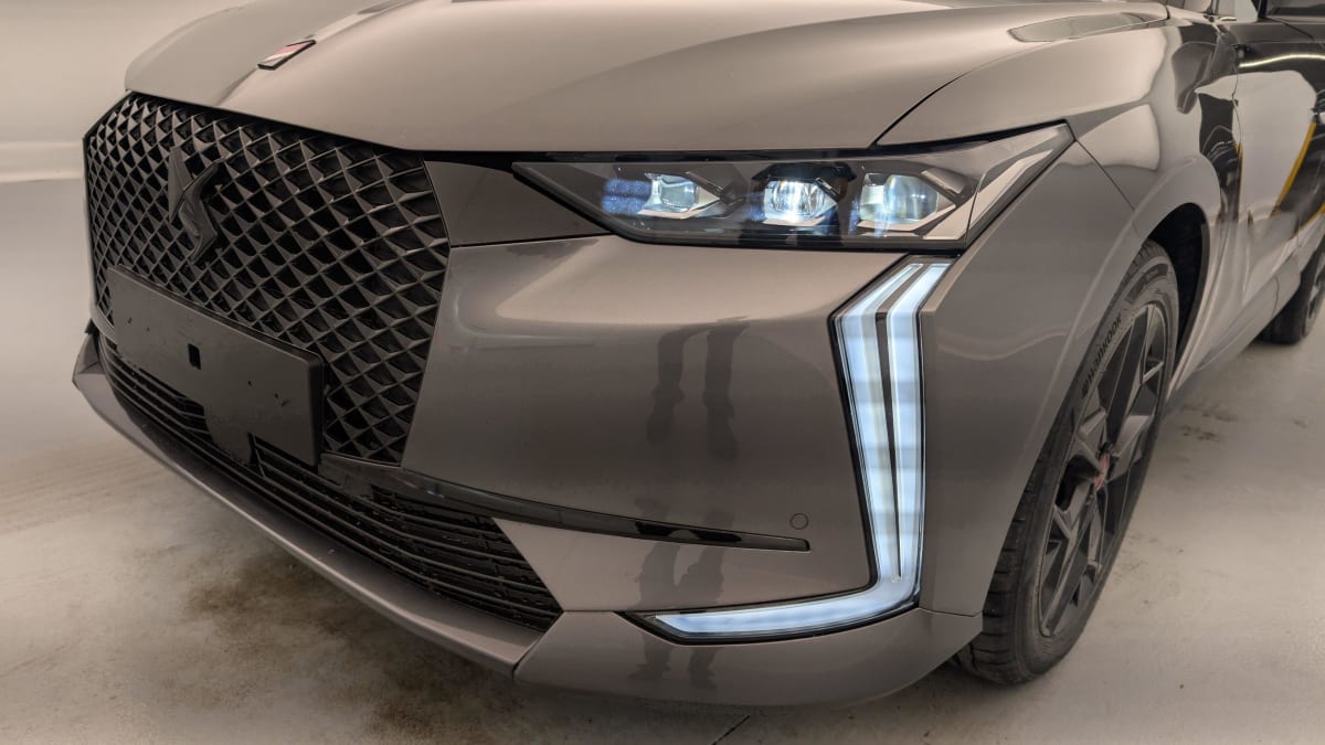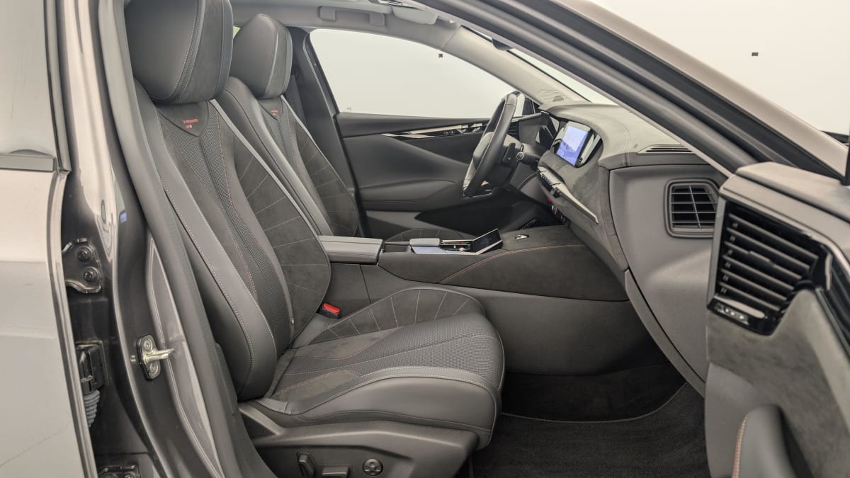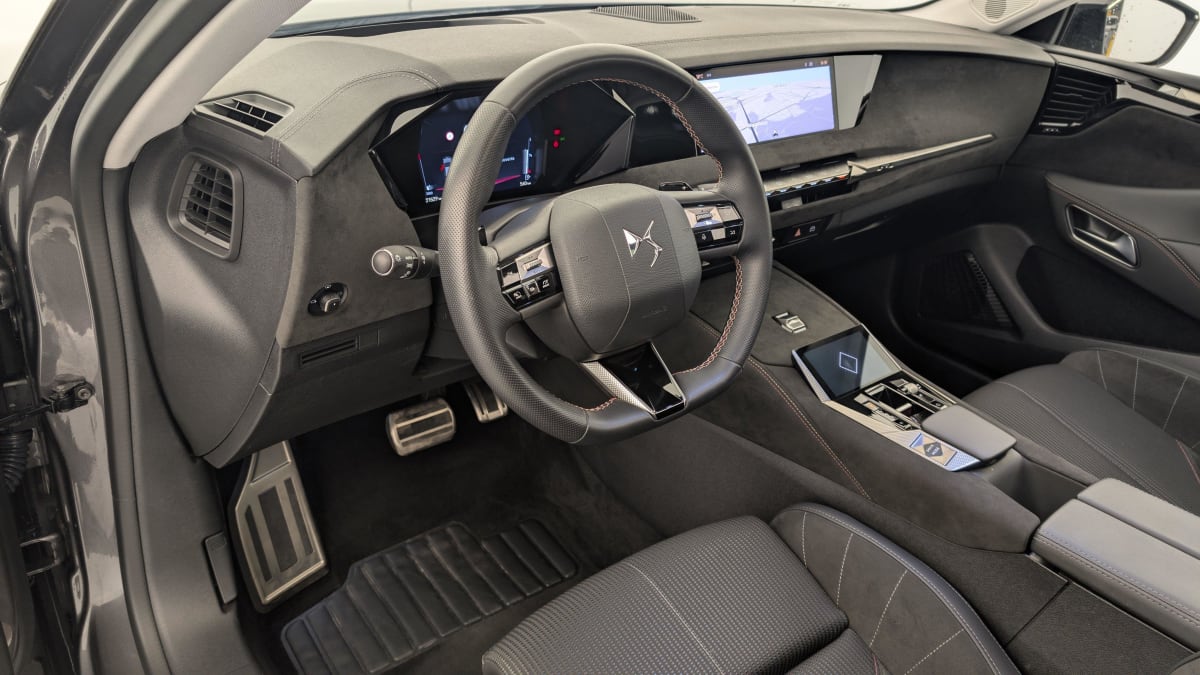 - Intérieur Tissu Tressé Basalte avec Alcantara : Planche de bord en alcantara Panneaux de portes en alcantara Console centrale en alcantara Sellerie en Tissu Tressé Basalte avec Alcantara et toile DS Décors de panneaux de porte Chrome guilloché Volant en cuir fleur Mistral avec surpiqûres Ciel de pavillon Salin