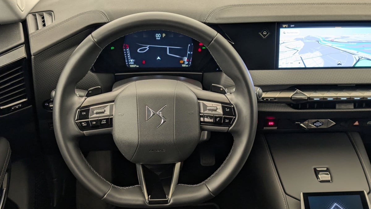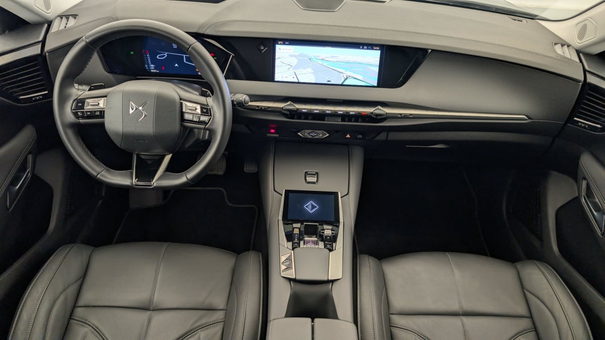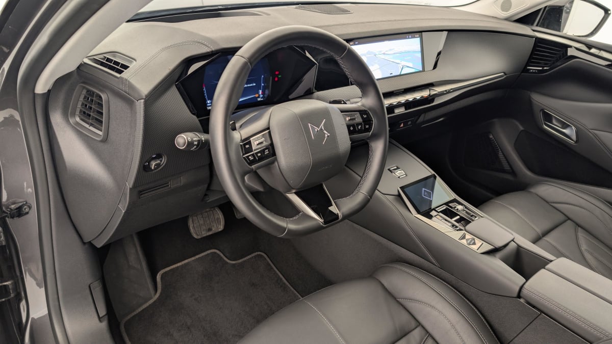 - Intérieur Cuir grainé Noir Basalte et Toile DS : Ciel de pavillon clair Décors de panneaux de porte Chrome guilloché Volant en cuir fleur Mistral Console centrale en Toile DS Mistral Planche de bord en toile DS Noir Basalte façon écaille Panneaux de portes en toile DS Noir Basalte façon écaille Sellerie en Cuir grainé Noir Basalte et Toile DS Parties centrales des sièges AV, partie centrale des sièges latéraux AR et partie AV des appuie-tête en cuir. Bourrelets latéraux des sièges AV, accoudoir central et siège central AR, et parties latérales et AR des appuis tête en Toile DS.