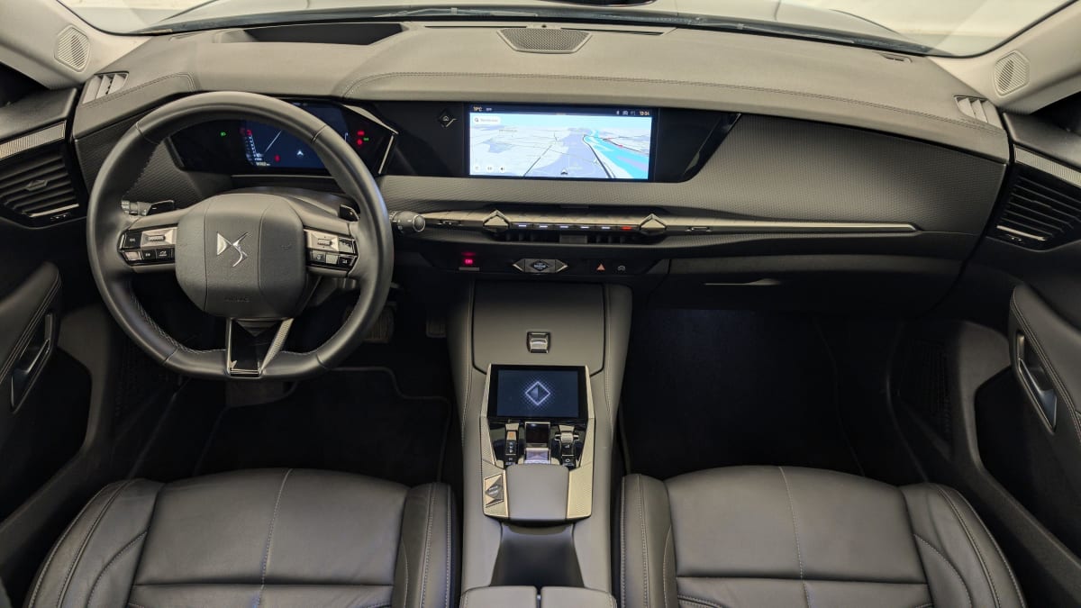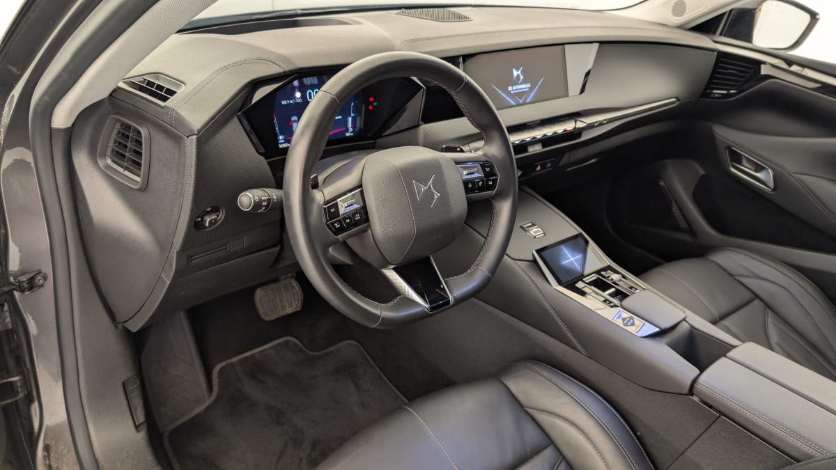 - Intérieur Cuir grainé Noir Basalte et Toile DS : Ciel de pavillon clair Décors de panneaux de porte Chrome guilloché Volant en cuir fleur Mistral Console centrale en Toile DS Mistral Planche de bord en toile DS Noir Basalte façon écaille Panneaux de portes en toile DS Noir Basalte façon écaille Sellerie en Cuir grainé Noir Basalte et Toile DS Parties centrales des sièges AV, partie centrale des sièges latéraux AR et partie AV des appuie-tête en cuir. Bourrelets latéraux des sièges AV, accoudoir central et siège central AR, et parties latérales et AR des appuis tête en Toile DS.