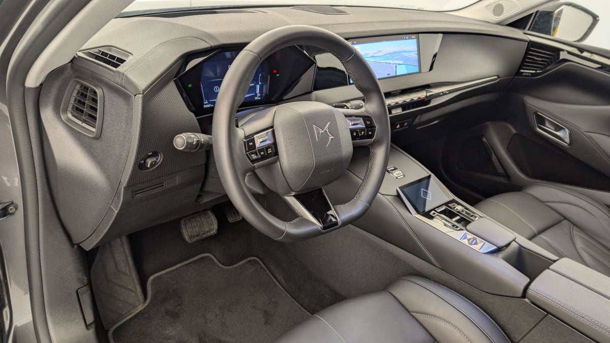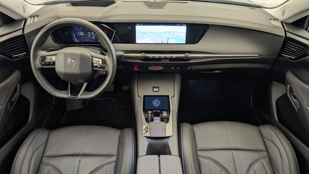 - Intérieur Cuir grainé Noir Basalte et Toile DS : Ciel de pavillon clair Décors de panneaux de porte Chrome guilloché Volant en cuir fleur Mistral Console centrale en Toile DS Mistral Planche de bord en toile DS Noir Basalte façon écaille Panneaux de portes en toile DS Noir Basalte façon écaille Sellerie en Cuir grainé Noir Basalte et Toile DS