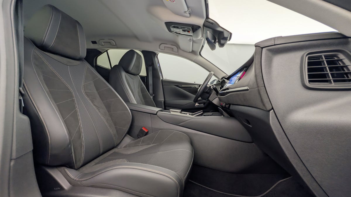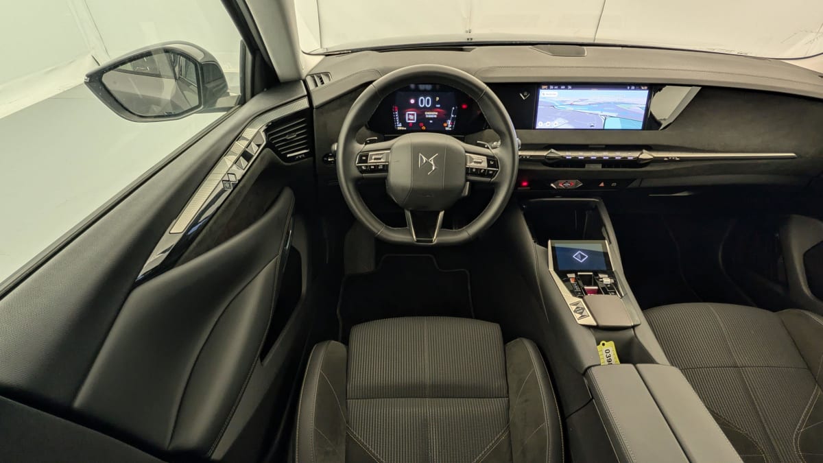 - Intérieur Alcantara Noir : Planche de bord en Alcantara Ciel de pavillon clair Sellerie en Tissu Tressé Basalte avec Alcantara et toile DS Décors de panneaux de porte Chrome guilloché Volant cuir Fleur Mistral Console en toile DS Noir Basalte Panneaux de porte en Alcantara et Toile DS Noir Basalte