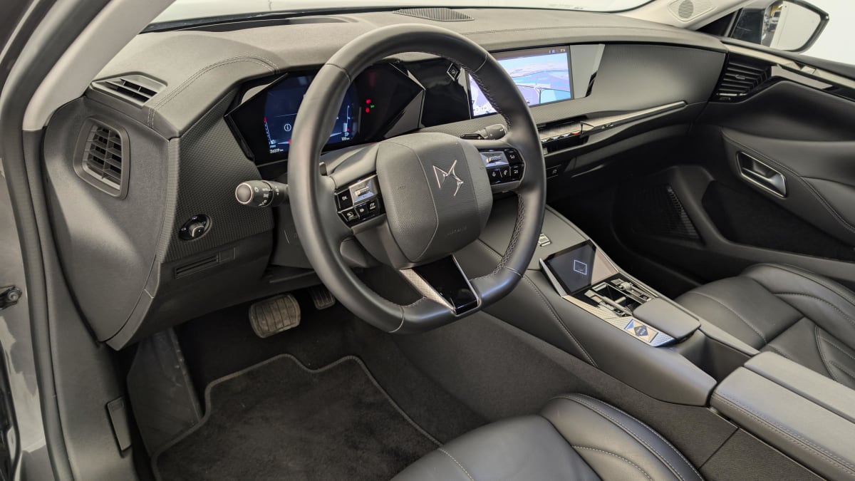 - Intérieur Cuir grainé Noir Basalte et Toile DS : Ciel de pavillon clair Décors de panneaux de porte Chrome guilloché Volant en cuir fleur Mistral Console centrale en Toile DS Mistral Planche de bord en toile DS Noir Basalte façon écaille Panneaux de portes en toile DS Noir Basalte façon écaille Sellerie en Cuir grainé Noir Basalte et Toile DS