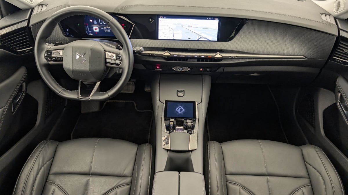 - Intérieur Cuir grainé Noir Basalte et Toile DS : Ciel de pavillon clair Décors de panneaux de porte Chrome guilloché Volant en cuir fleur Mistral Console centrale en Toile DS Mistral Planche de bord en toile DS Noir Basalte façon écaille Panneaux de portes en toile DS Noir Basalte façon écaille Sellerie en Cuir grainé Noir Basalte et Toile DS