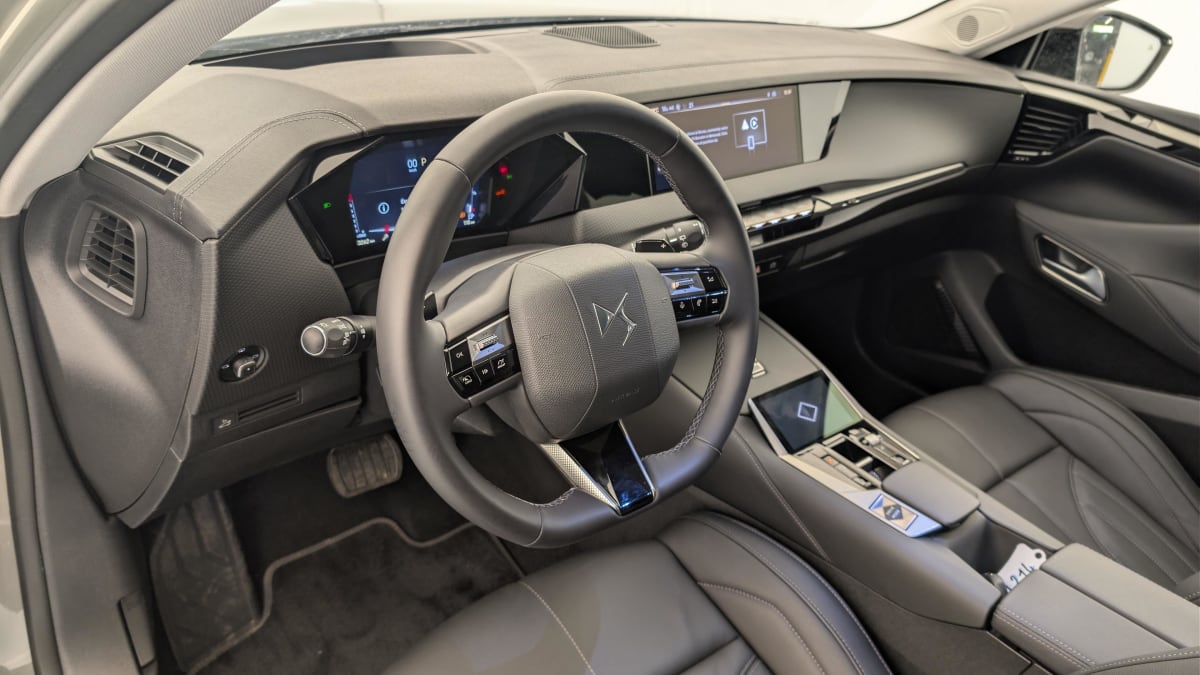 - Intérieur Cuir grainé Noir Basalte et Toile DS : Ciel de pavillon clair Décors de panneaux de porte Chrome guilloché Volant en cuir fleur Mistral Console centrale en Toile DS Mistral Planche de bord en toile DS Noir Basalte façon écaille Panneaux de portes en toile DS Noir Basalte façon écaille Sellerie en Cuir grainé Noir Basalte et Toile DS Parties centrales des sièges AV, partie centrale des sièges latéraux AR et partie AV des appuie-tête en cuir. Bourrelets latéraux des sièges AV, accoudoir central et siège central AR, et parties latérales et AR des appuis tête en Toile DS.