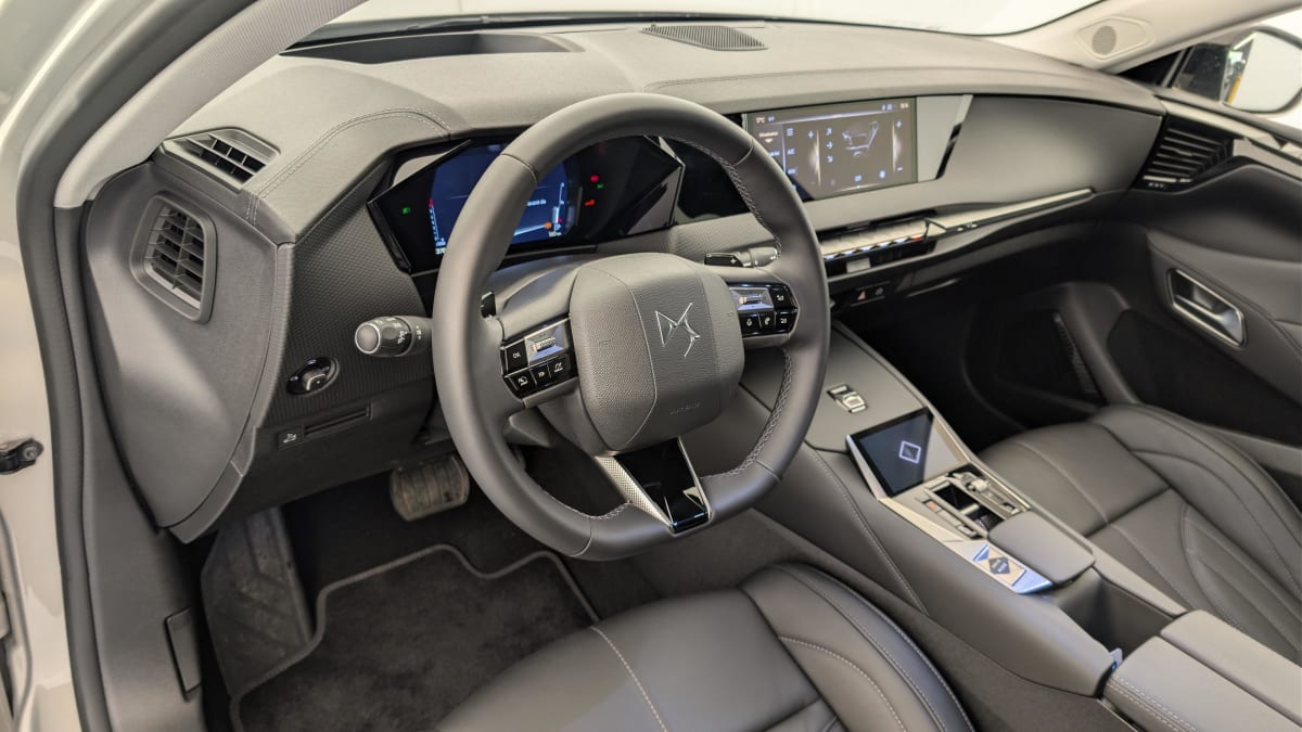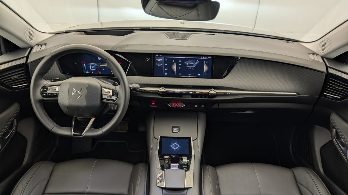 - Intérieur Cuir grainé Noir Basalte et Toile DS : Ciel de pavillon clair Décors de panneaux de porte Chrome guilloché Volant en cuir fleur Mistral Console centrale en Toile DS Mistral Planche de bord en toile DS Noir Basalte façon écaille Panneaux de portes en toile DS Noir Basalte façon écaille Sellerie en Cuir grainé Noir Basalte et Toile DS Parties centrales des sièges AV, partie centrale des sièges latéraux AR et partie AV des appuie-tête en cuir. Bourrelets latéraux des sièges AV, accoudoir central et siège central AR, et parties latérales et AR des appuis tête en Toile DS.
