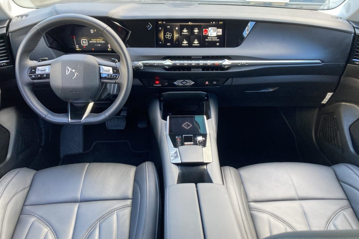 - Intérieur Cuir grainé Noir Basalte et Toile DS : Ciel de pavillon clair Décors de panneaux de porte Chrome guilloché Volant en cuir fleur Mistral Console centrale en Toile DS Mistral Planche de bord en toile DS Noir Basalte façon écaille Panneaux de portes en toile DS Noir Basalte façon écaille Sellerie en Cuir grainé Noir Basalte et Toile DS Parties centrales des sièges AV, partie centrale des sièges latéraux AR et partie AV des appuie-tête en cuir. Bourrelets latéraux des sièges AV, accoudoir central et siège central AR, et parties latérales et AR des appuis tête en Toile DS.