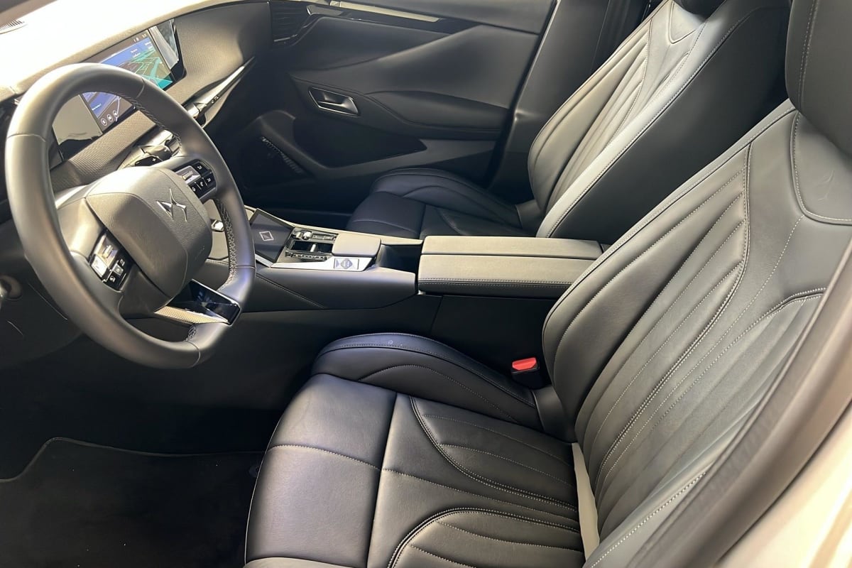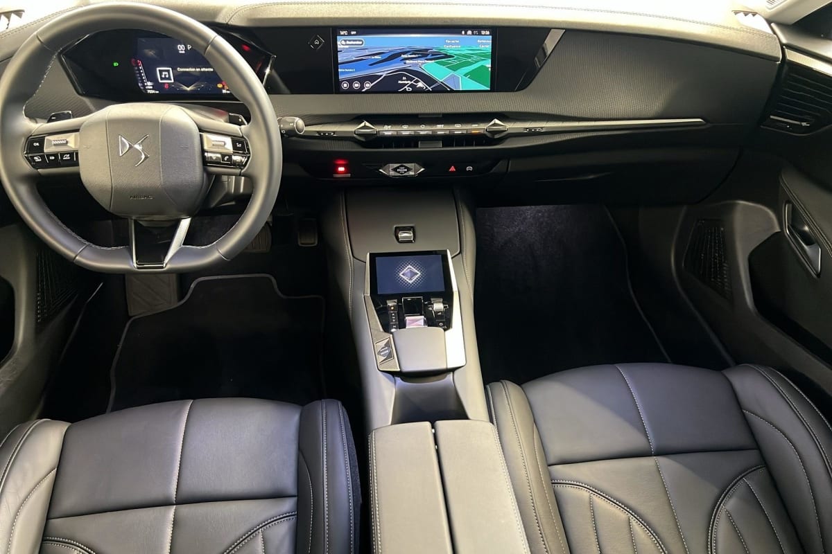 - Intérieur Cuir grainé Noir Basalte et Toile DS : Ciel de pavillon clair Décors de panneaux de porte Chrome guilloché Volant en cuir fleur Mistral Console centrale en Toile DS Mistral Planche de bord en toile DS Noir Basalte façon écaille Panneaux de portes en toile DS Noir Basalte façon écaille Sellerie en Cuir grainé Noir Basalte et Toile DS Parties centrales des sièges AV, partie centrale des sièges latéraux AR et partie AV des appuie-tête en cuir. Bourrelets latéraux des sièges AV, accoudoir central et siège central AR, et parties latérales et AR des appuis tête en Toile DS.