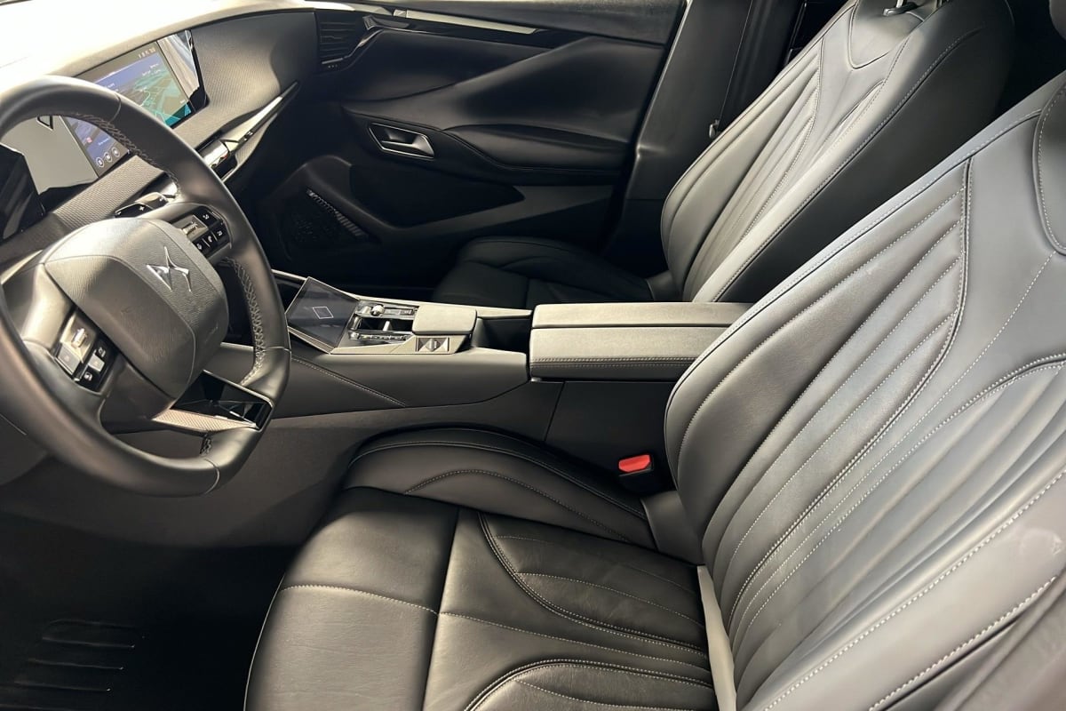 - Intérieur Cuir grainé Noir Basalte et Toile DS : Ciel de pavillon clair Décors de panneaux de porte Chrome guilloché Volant en cuir fleur Mistral Console centrale en Toile DS Mistral Planche de bord en toile DS Noir Basalte façon écaille Panneaux de portes en toile DS Noir Basalte façon écaille Sellerie en Cuir grainé Noir Basalte et Toile DS Parties centrales des sièges AV, partie centrale des sièges latéraux AR et partie AV des appuie-tête en cuir. Bourrelets latéraux des sièges AV, accoudoir central et siège central AR, et parties latérales et AR des appuis tête en Toile DS.
